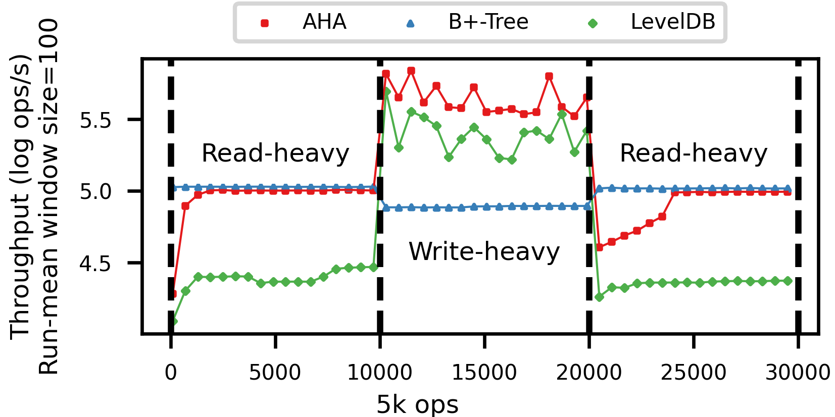 HTAP systems are designed to handle transactional and analytical workloads. Besides a mixed workload at any given time, the workload can also change over time. A popular type of continuously changing workload is one that oscillates between being write-heavy at times and being read-heavy at other times. Oscillating workloads can be observed in many applications. Indexes, e.g., the B+-tree and the LSM-tree, cannot perform equally well all the time. Conventional adaptive indexing does not solve this issue as it focuses on adapting in one direction. This paper studies how to support oscillating workloads with adaptive indexes that adapt the underlying index structures in both directions. With the observation that real-world datasets are skewed, the focus is to optimize the index within the hotspot regions. The Adaptive Hotspot-Aware Tree (or AHA-tree, for short) is introduced, where its adaptation is bi-directional. Experimental evaluation show that AHA-tree can behave competitively as compared to an LSM-tree for write-heavy transactional workloads. Upon switching to a read-heavy analytical workload, AHA-tree can gradually adapt and behave competitively, and can match the B+-tree in read performance.