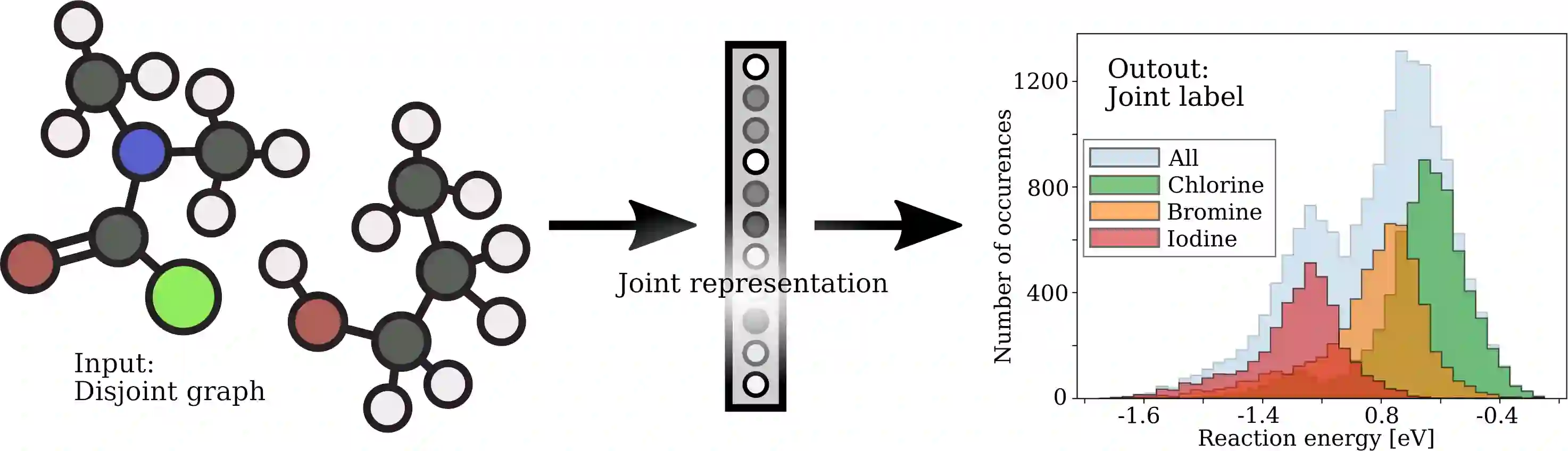 Graph neural networks are widely used to learn global representations of graphs, which are then used for regression or classification tasks. Typically, the graphs in such data sets are connected, i.e. each training sample consists of a single internally connected graph associated with a global label. However, there is a wide variety of yet unconsidered but application-relevant tasks, where labels are assigned to sets of disjoint graphs, which requires the generation of global representations of disjoint graphs. In this paper, we present a new data set with chemical reactions, which is illustrating this task. Each sample consists of a pair of disjoint molecular graphs and a joint label representing a scalar measure associated with the chemical reaction of the molecules. We show the initial results of graph neural networks that are able to solve the task within a combinatorial subset of the dataset but do not generalize well to the full data set and unseen (sub)graphs.