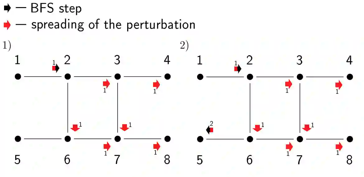 The problem of finding the connected components of a graph is considered. The algorithms addressed to solve the problem are used to solve such problems on graphs as problems of finding points of articulation, bridges, maximin bridge, etc. A natural approach to solving this problem is a breadth-first search, the implementations of which are presented in software libraries designed to maximize the use of the capabi\-lities of modern computer architectures. We present an approach using perturbations of adjacency matrix of a graph. We check wether the graph is connected or not by comparing the solutions of the two systems of linear algebraic equations (SLAE): the first SLAE with a perturbed adjacency matrix of the graph and the second SLAE with~unperturbed matrix. This approach makes it possible to use effective numerical implementations of SLAE solution methods to solve connectivity problems on graphs. Iterations of iterative numerical methods for solving such SLAE can be considered as carrying out a graph traversal. Generally speaking, the traversal is not equivalent to the traversal that is carried out with breadth-first search. An algorithm for finding the connected components of a graph using such a traversal is presented. For any instance of the problem, this algorithm has no greater computational complexity than breadth-first search, and for~most individual problems it has less complexity.
