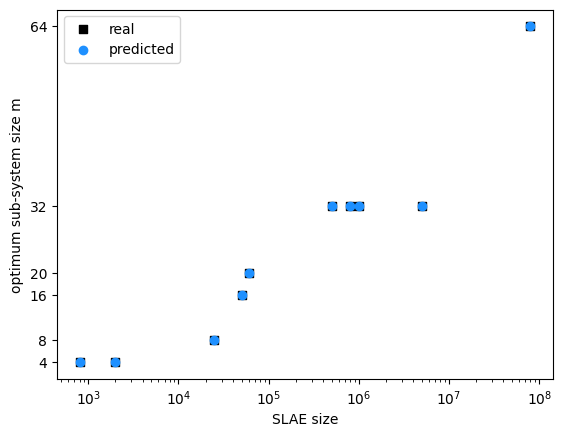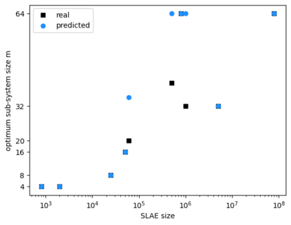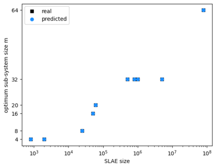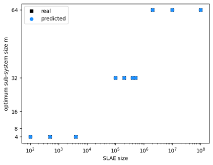 This paper presents a machine learning (ML)-based heuristic for finding the optimum sub-system size for the CUDA implementation of the parallel partition algorithm. Computational experiments for different system of linear algebraic equation (SLAE) sizes are conducted, and the optimum sub-system size for each of them is found empirically. To estimate a model for the sub-system size, we perform the k-nearest neighbors (kNN) classification method. Statistical analysis of the results is done. By comparing the predicted values with the actual data, the algorithm is deemed to be acceptably good. Next, the heuristic is expanded to work for the recursive parallel partition algorithm as well. An algorithm for determining the optimum sub-system size for each recursive step is formulated. A kNN model for predicting the optimum number of recursive steps for a particular SLAE size is built.