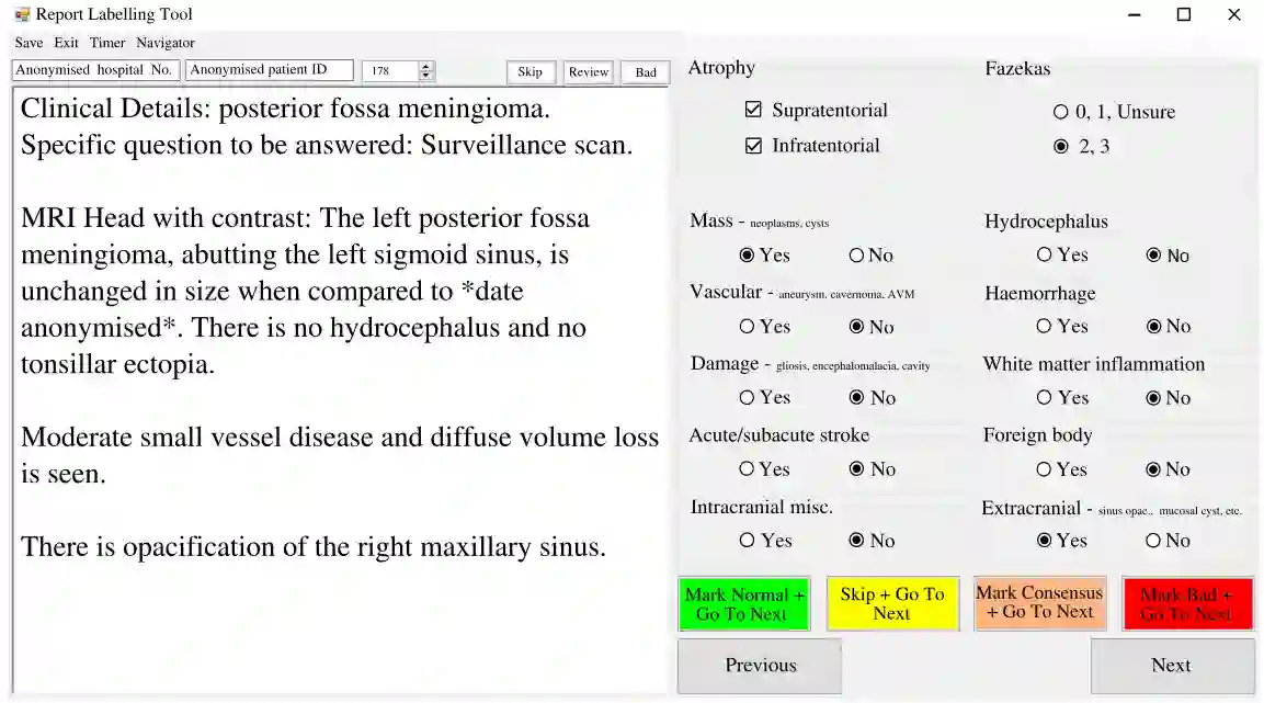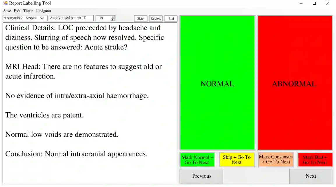 翻译:自然语言处理(NLP)显示有希望将医院规模神经放射磁共振成像(MRI)数据集的标签自动化,用于计算机视觉应用。然而,迄今为止,还没有对这一方法的有效性进行彻底调查,包括确定报告标签与图像标签的准确性,以及检查非专业标签标签的性能。在这项工作中,我们吸取一个神经放射学家团队的经验,该团队将5,000多份MRI神经放射学报告贴上标签,作为建设专门的深层次学习神经放射学报告分类器项目的一部分。我们表明,根据我们的经验,单从报告中分配的二进制标签(即正常与异常)非常准确。然而,与二进制标签相比,更多颗粒标签的准确性取决于分类,我们强调这一差异的原因。我们还表明,当非专业工作者对培训报告进行标签时,下游模式性表现会降低。为了使其他研究人员能够加快他们的研究,我们将我们精细的异常定义和标签规则(即正常与异常)分配给报告本身是高度准确的。然而,与二进封标签的标签则取决于该类别,更多的颗粒标签的准确性取决于该类别,我们能够简化的辐射的标签,从而简化的标签,从而简化了我们的辐射标签作为应用报告。