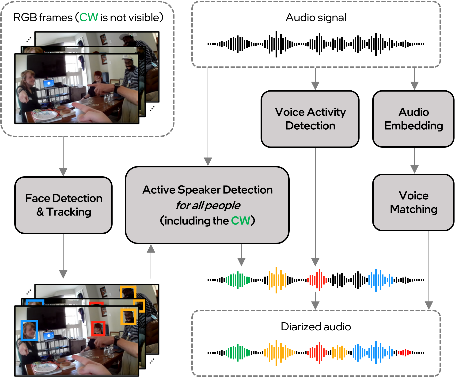 This report introduces our novel method named STHG for the Audio-Visual Diarization task of the Ego4D Challenge 2023. Our key innovation is that we model all the speakers in a video using a single, unified heterogeneous graph learning framework. Unlike previous approaches that require a separate component solely for the camera wearer, STHG can jointly detect the speech activities of all people including the camera wearer. Our final method obtains 61.1% DER on the test set of Ego4D, which significantly outperforms all the baselines as well as last year's winner. Our submission achieved 1st place in the Ego4D Challenge 2023. We additionally demonstrate that applying the off-the-shelf speech recognition system to the diarized speech segments by STHG produces a competitive performance on the Speech Transcription task of this challenge.