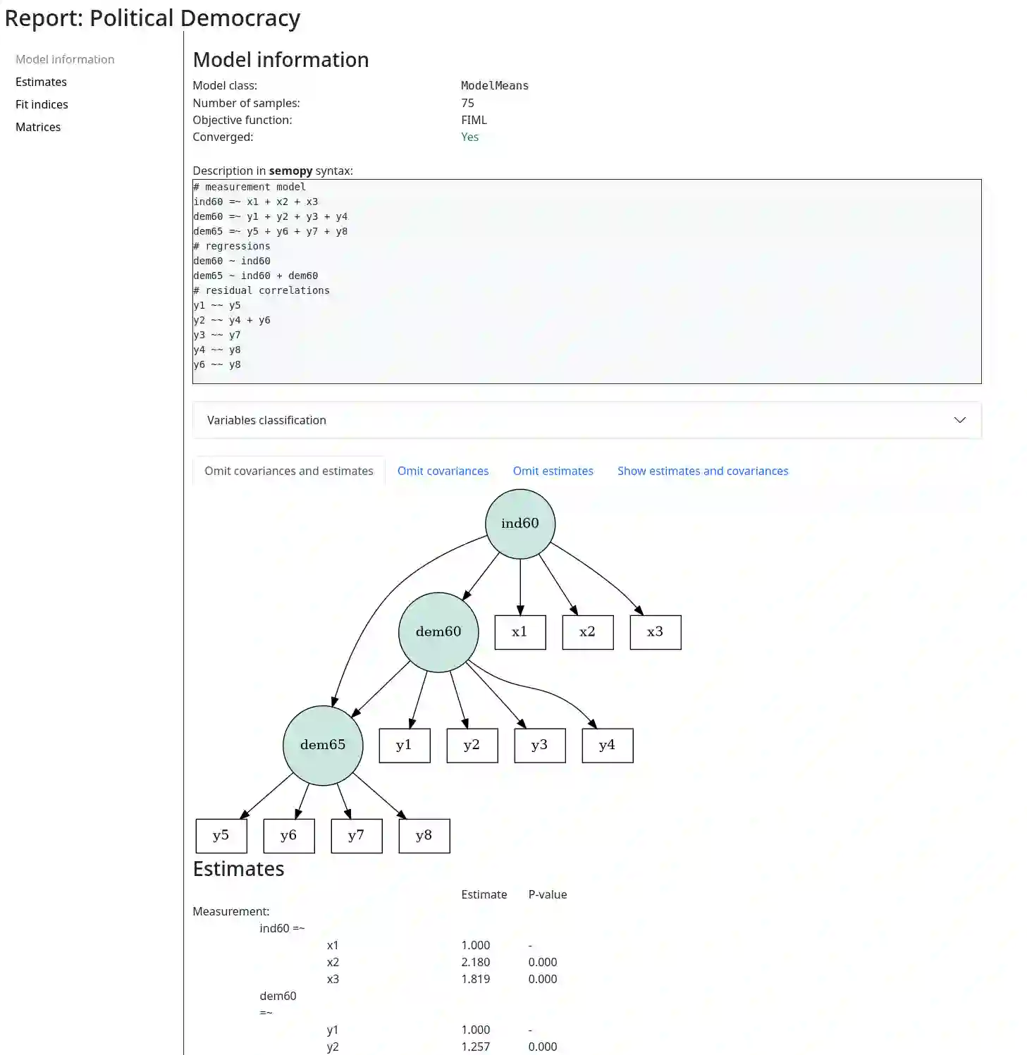 翻译:结构等式模型(SEM)是一个总括术语,包括社会科学到自然科学等众多研究领域使用的多种多变统计技术。直到最近,SEM软件要么是商业软件,要么仅限于特殊语言,缺乏与较主流编程语言相容的SEM软件包非常糟糕。为此,我们引入了一个Python软件模版1,该软件在性能和估计准确性方面超过了其他最先进的软件。然而,它缺乏功能,其使用也伴随着不必要的锅炉板代码。在这里,我们引入了对模版的彻底修改,改进了先前的结果,并带来了许多新的能力。此外,我们提出了一个新的SEM模型,将线性混合模型(LMMs)的随机效应概念本身结合到多种现象的模型中,例如空间数据、时间序列或基因人口分层。