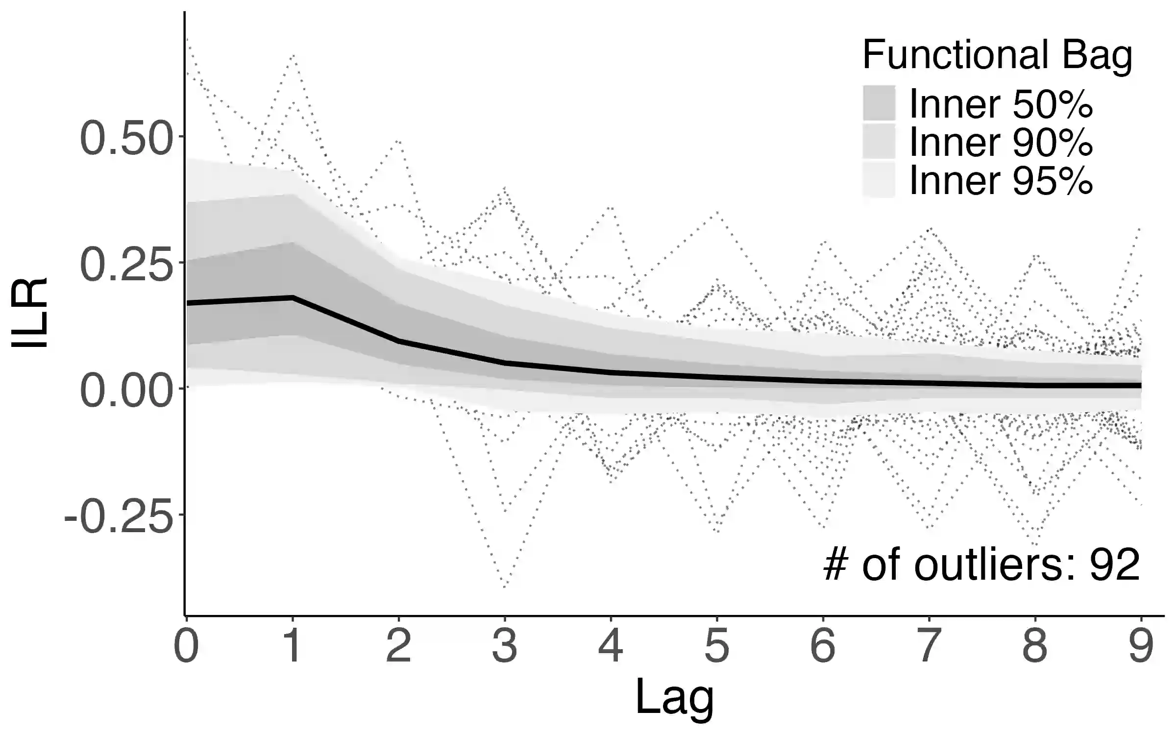 翻译:我们采用功能性数据分析方法,分析了NAIC附表P损失三角形中的损失发展情况。从功能性视角出发,我们的数据集包含超过3300条工人赔偿险种在24个事故年度内的增量损失率曲线。基于功能性数据深度,我们首先研究了基于公司特定协变量的发展模式之间的相似性与差异,并识别了异常的增量损失率曲线。这些探索性发现为本文后半部分开发的概率预测框架提供了动机。我们提出了一种功能性模型,用于基于主成分分析得分的偏最小二乘回归来完成部分已发展的增量损失率曲线。将上述方法与功能性自举法结合,使我们能够量化所有未来滞后期的增量损失率联合不确定性。我们证明,相对于链梯法,我们的方法在概率评分方面表现更优,尤其能够提供准确的功能性预测区间。