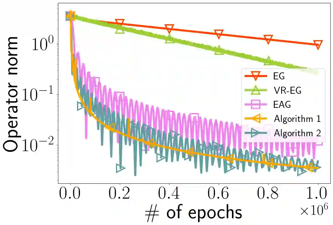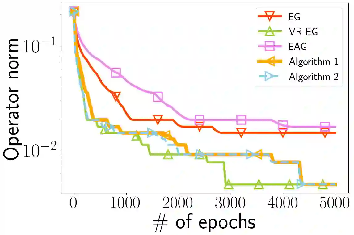 Machine learning approaches relying on such criteria as adversarial robustness or multi-agent settings have raised the need for solving game-theoretic equilibrium problems. Of particular relevance to these applications are methods targeting finite-sum structure, which generically arises in empirical variants of learning problems in these contexts. Further, methods with computable approximation errors are highly desirable, as they provide verifiable exit criteria. Motivated by these applications, we study finite-sum monotone inclusion problems, which model broad classes of equilibrium problems. Our main contributions are variants of the classical Halpern iteration that employ variance reduction to obtain improved complexity guarantees in which $n$ component operators in the finite sum are ``on average'' either cocoercive or Lipschitz continuous and monotone, with parameter $L$. The resulting oracle complexity of our methods, which provide guarantees for the last iterate and for a (computable) operator norm residual, is $\widetilde{\mathcal{O}}( n + \sqrt{n}L\varepsilon^{-1})$, which improves upon existing methods by a factor up to $\sqrt{n}$. This constitutes the first variance reduction-type result for general finite-sum monotone inclusions and for more specific problems such as convex-concave optimization when operator norm residual is the optimality measure. We further argue that, up to poly-logarithmic factors, this complexity is unimprovable in the monotone Lipschitz setting; i.e., the provided result is near-optimal.