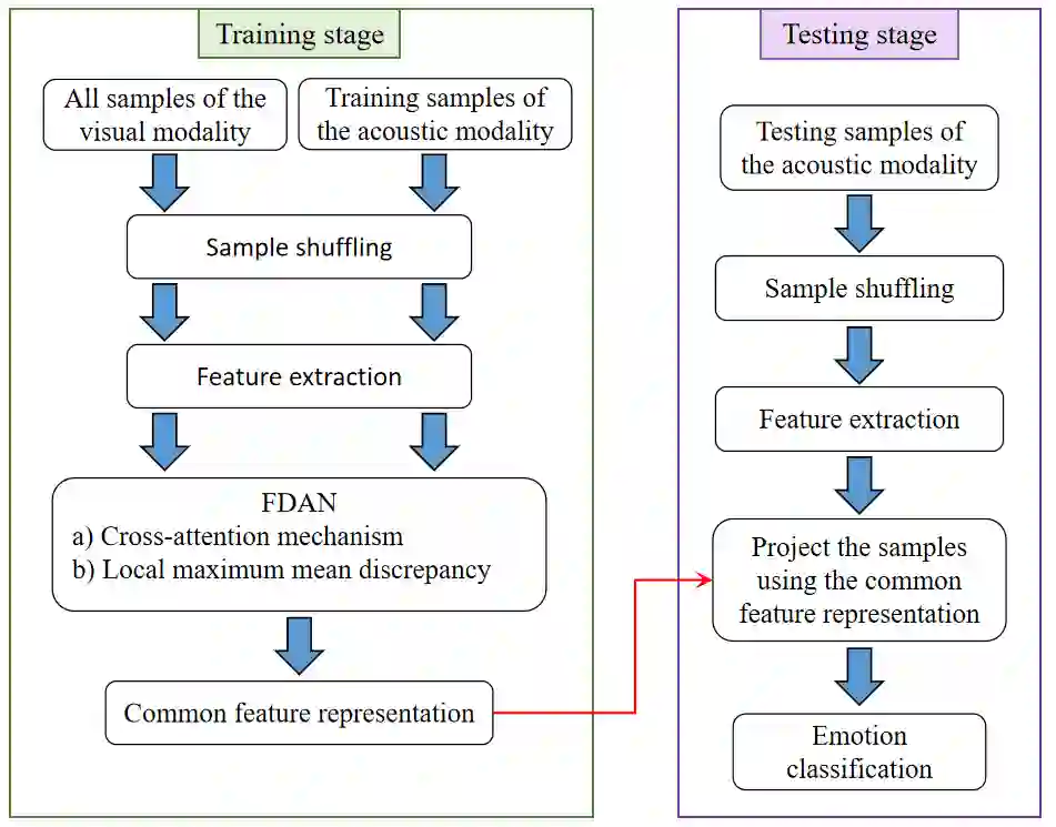 In this paper, we propose a novel deep inductive transfer learning framework, named feature distribution adaptation network, to tackle the challenging multi-modal speech emotion recognition problem. Our method aims to use deep transfer learning strategies to align visual and audio feature distributions to obtain consistent representation of emotion, thereby improving the performance of speech emotion recognition. In our model, the pre-trained ResNet-34 is utilized for feature extraction for facial expression images and acoustic Mel spectrograms, respectively. Then, the cross-attention mechanism is introduced to model the intrinsic similarity relationships of multi-modal features. Finally, the multi-modal feature distribution adaptation is performed efficiently with feed-forward network, which is extended using the local maximum mean discrepancy loss. Experiments are carried out on two benchmark datasets, and the results demonstrate that our model can achieve excellent performance compared with existing ones.