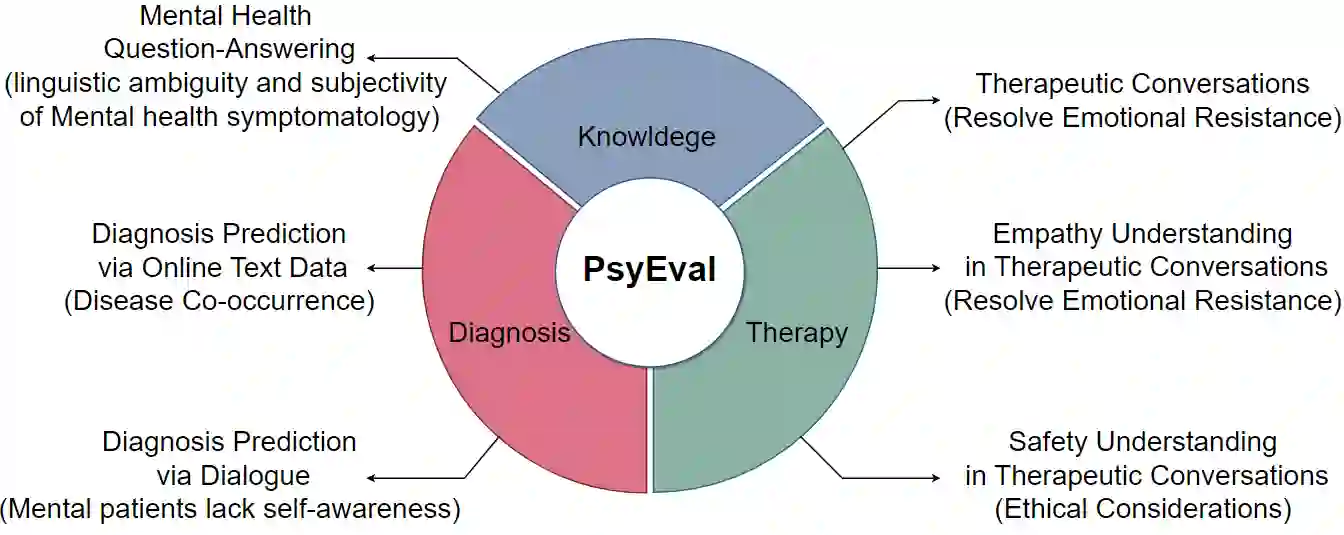 Recently, there has been a growing interest in utilizing large language models (LLMs) in mental health research, with studies showcasing their remarkable capabilities, such as disease detection. However, there is currently a lack of a comprehensive benchmark for evaluating the capability of LLMs in this domain. Therefore, we address this gap by introducing the first comprehensive benchmark tailored to the unique characteristics of the mental health domain. This benchmark encompasses a total of six sub-tasks, covering three dimensions, to systematically assess the capabilities of LLMs in the realm of mental health. We have designed corresponding concise prompts for each sub-task. And we comprehensively evaluate a total of eight advanced LLMs using our benchmark. Experiment results not only demonstrate significant room for improvement in current LLMs concerning mental health but also unveil potential directions for future model optimization.