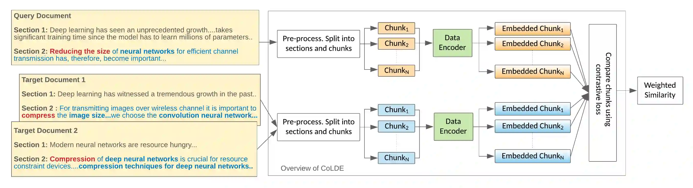 翻译:最近深层学习技术的进步改变了语义文本匹配的领域。 但是,大多数最先进的模型的设计是使用简短的文件,如推文、用户评论、评论等。 这些模型在应用科学论文、法律文件和专利等长格式文件时具有根本性的局限性。 当处理如此长的文件时,有三大挑战:(一) 在整个文档中存在不同背景的同一词,(二) 两个文档之间背景相似的文本的小部分,但在其余部分中则有差异的文本(这不符合对“相似性”的基本理解),以及(三) 单一全球相似性衡量的粗略性质,无法捕捉到文件内容内容的异性。 在本文件中,我们描述COLDE: 对比性长文档编码――一个基于变异框架,可以对长文档进行可解释的比较。 CoLDE使用独特的位置嵌嵌入和多发式直径直线的注意层层,连同一个监督的对比性学习框架,用来在三个不同层次上反映相似性,(一) 类似文件在不同的分级和分级文档中,(一) 在不同的分级文档和分级中,不同层次之间,不同分级之间也提供相似的更高层次的文件解释。