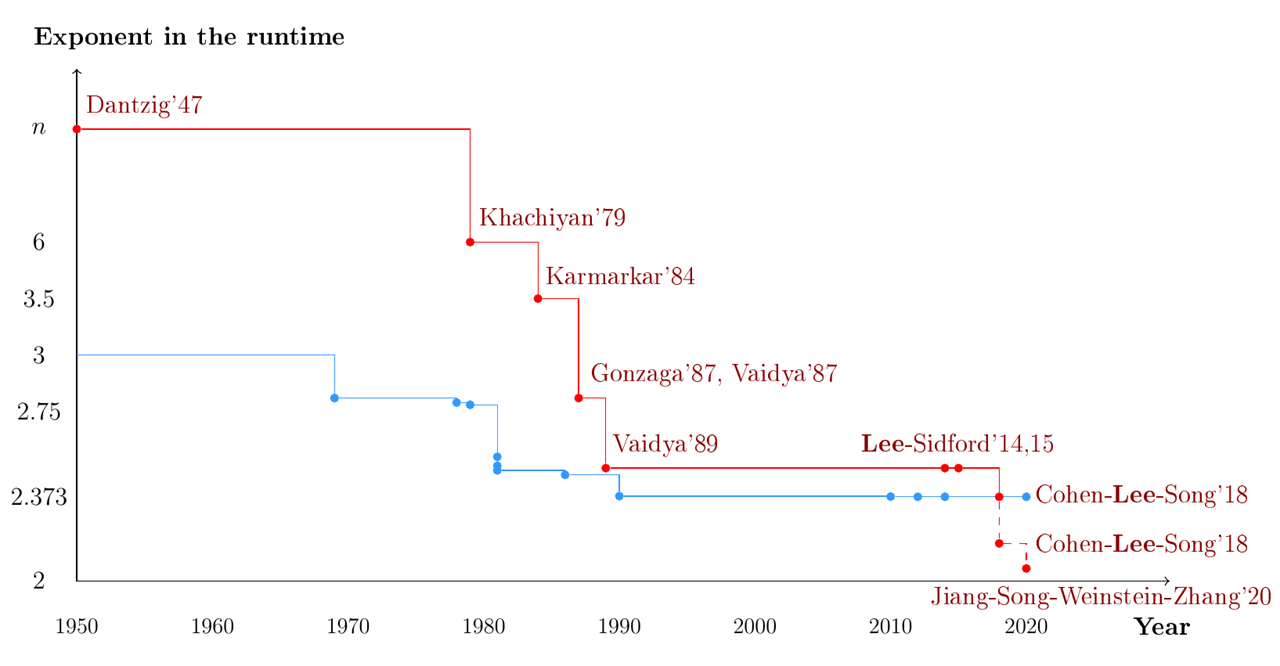 Algorithms for continuous optimization problems have a rich history of design and innovation over the past several decades, in which mathematical analysis of their convergence and complexity properties plays a central role. Besides their theoretical properties, optimization algorithms are interesting also for their practical usefulness as computational tools for solving real-world problems. There are often gaps between the practical performance of an algorithm and what can be proved about it. These two facets of the field -- the theoretical and the practical -- interact in fascinating ways, each driving innovation in the other. This work focuses on the development of algorithms in two areas -- linear programming and unconstrained minimization of smooth functions -- outlining major algorithm classes in each area along with their theoretical properties and practical performance, and highlighting how advances in theory and practice have influenced each other in these areas. In discussing theory, we focus mainly on non-asymptotic complexity, which are upper bounds on the amount of computation required by a given algorithm to find an approximate solution of problems in a given class.