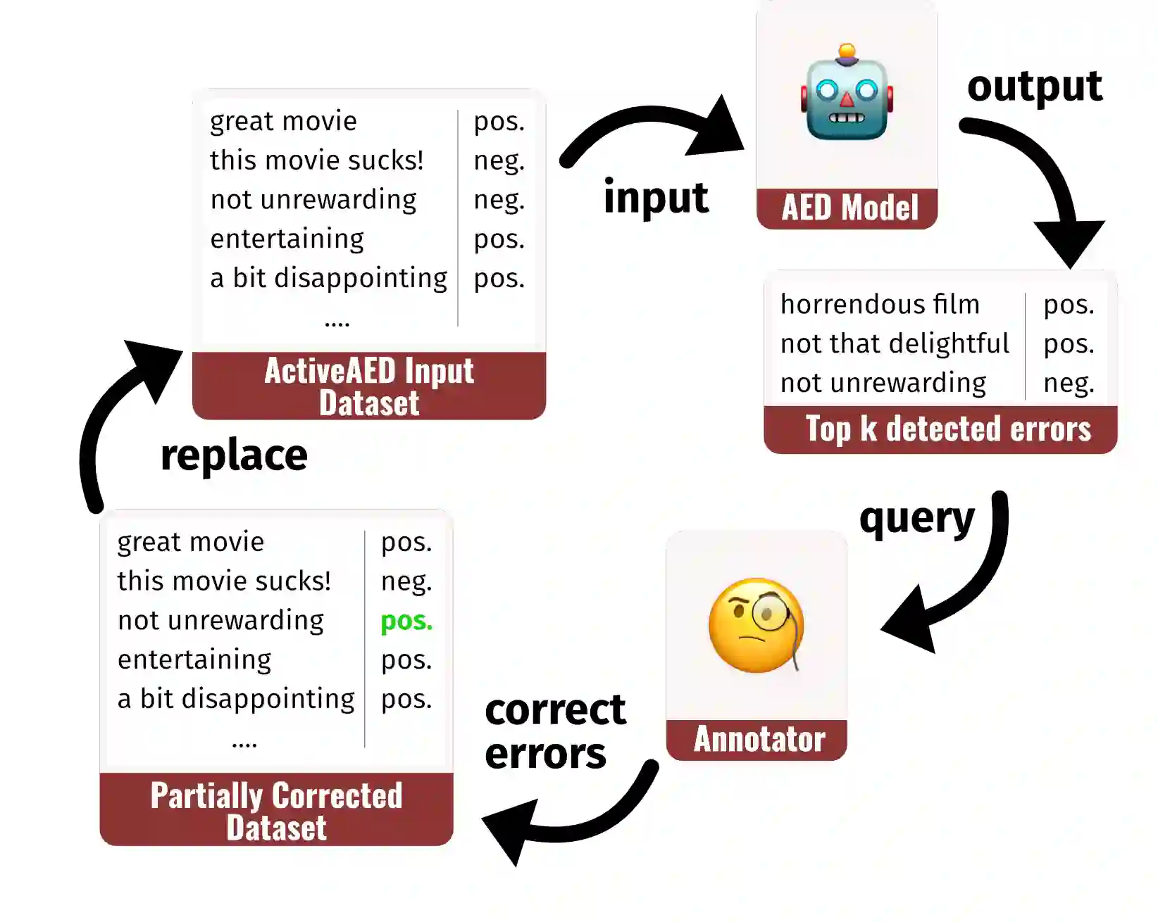 Manually annotated datasets are crucial for training and evaluating Natural Language Processing models. However, recent work has discovered that even widely-used benchmark datasets contain a substantial number of erroneous annotations. This problem has been addressed with Annotation Error Detection (AED) models, which can flag such errors for human re-annotation. However, even though many of these AED methods assume a final curation step in which a human annotator decides whether the annotation is erroneous, they have been developed as static models without any human-in-the-loop component. In this work, we propose ActiveAED, an AED method that can detect errors more accurately by repeatedly querying a human for error corrections in its prediction loop. We evaluate ActiveAED on eight datasets spanning five different tasks and find that it leads to improvements over the state of the art on seven of them, with gains of up to six percentage points in average precision.