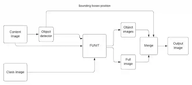 Unsupervised image-to-image translation methods have received a lot of attention in the last few years. Multiple techniques emerged tackling the initial challenge from different perspectives. Some focus on learning as much as possible from several target style images for translations while other make use of object detection in order to produce more realistic results on content-rich scenes. In this work, we assess how a method that has initially been developed for single object translation performs on more diverse and content-rich images. Our work is based on the FUNIT[1] framework and we train it with a more diverse dataset. This helps understanding how such method behaves beyond their initial frame of application. We present a way to extend a dataset based on object detection. Moreover, we propose a way to adapt the FUNIT framework in order to leverage the power of object detection that one can see in other methods.