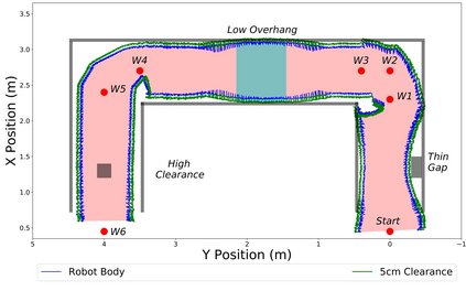 翻译:脚步机器人有能力调整行走姿势以导航封闭的空间, 因为他们的自由度较高。 但是, 这一点在大多数常见的多脚平台上都没有被利用。 本文展示了机器人模型的变形捆绑盒式抽象, 连同配套的绘图和规划策略, 使脚步机器人能够自动改变身体形状以导航封闭的空间。 绘制地图时使用了机器人携带的远程传感器生成的以机器人为中心的多升地图。 路径规划基于轨迹优化算法 CHOMP, 该算法在避免障碍的同时创造滑动轨迹。 提议的方法在模拟中测试, 并在六粒机器人 Weaver 上实施, 通常行走时为33\, cm 高和 82\ 厘米宽。 我们用70厘米宽的宽空隙和超过22厘米的高屏障, 在人工测试空间和现实环境中, 包括地下采矿隧道, 我们展示了在25厘米以下的悬崖下航行。