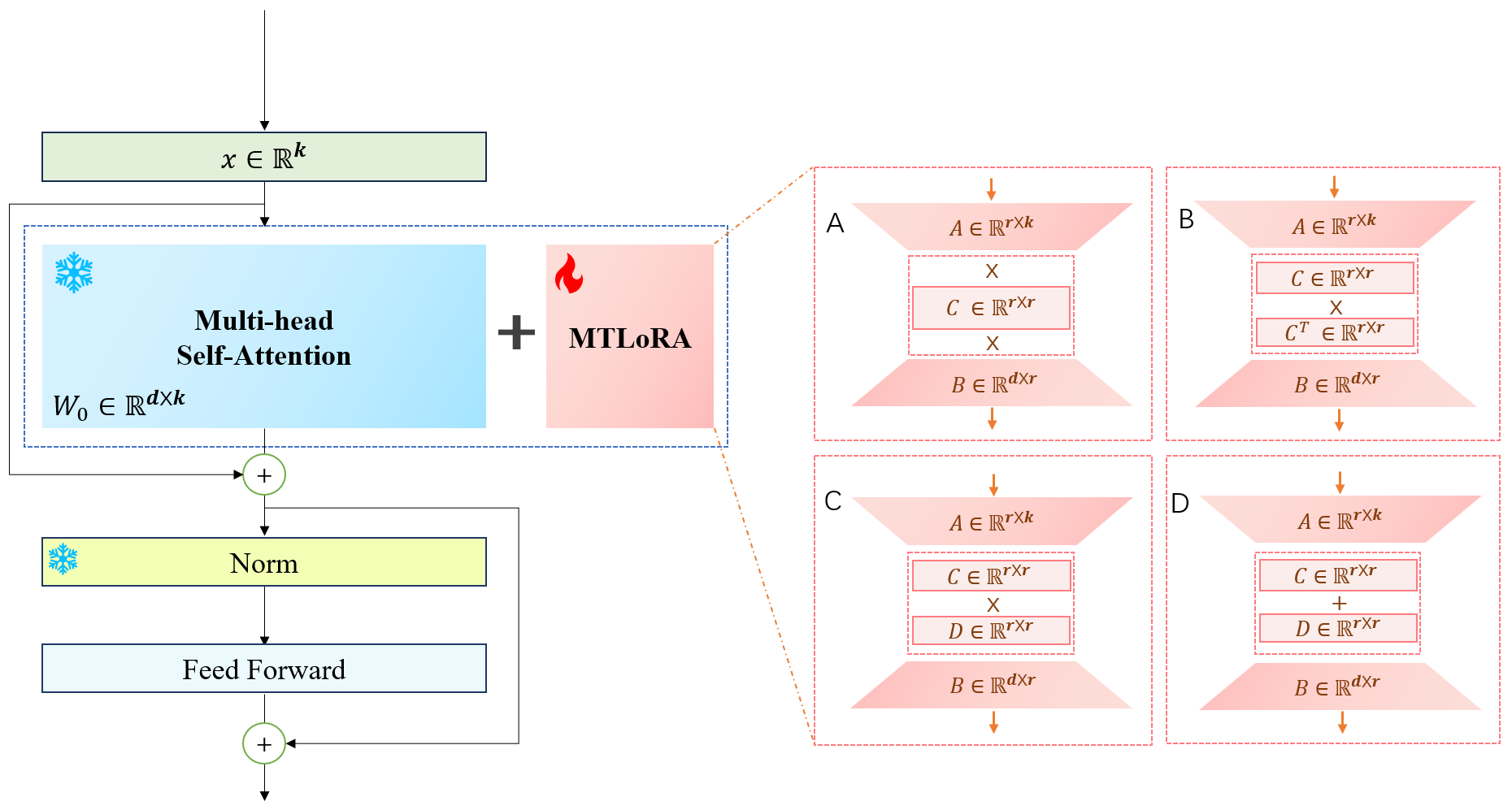 Fine-tuning techniques based on Large Pretrained Language Models (LPLMs) have been proven to significantly enhance model performance on a variety of downstream tasks and effectively control the output behaviors of LPLMs. Recent studies have proposed numerous methods for fine-tuning a small number of parameters based on open-source LPLMs, reducing the demand for computational and storage resources. Among these, reparameterization fine-tuning methods represented by LoRA (Low-Rank Adaptation) have gained popularity. We find that although these methods perform well in many aspects, there is still considerable room for improvement in terms of complex task adaptability, performance, stability, and algorithm complexity. In response to this, inspired by the idea that the functions of the brain are shaped by its geometric structure, this paper integrates this idea into LoRA technology and proposes a new matrix transformation-based reparameterization method for efficient fine-tuning, named Matrix-Transformation based Low-Rank Adaptation (MTLoRA). MTLoRA aims to dynamically alter its spatial geometric structure by applying a transformation-matrix T to perform linear transformations, such as rotation, scaling, and translation, on the task-specific parameter matrix, generating new matrix feature patterns (eigenvectors) to mimic the fundamental influence of complex geometric structure feature patterns in the brain on functions, thereby enhancing the model's performance in downstream tasks. In Natural Language Understanding (NLU) tasks, it is evaluated using the GLUE benchmark test, and the results reveal that MTLoRA achieves an overall performance increase of about 1.0% across eight tasks; in Natural Language Generation (NLG) tasks, MTLoRA improves performance by an average of 0.95% and 0.56% in the DART and WebNLG tasks, respectively.