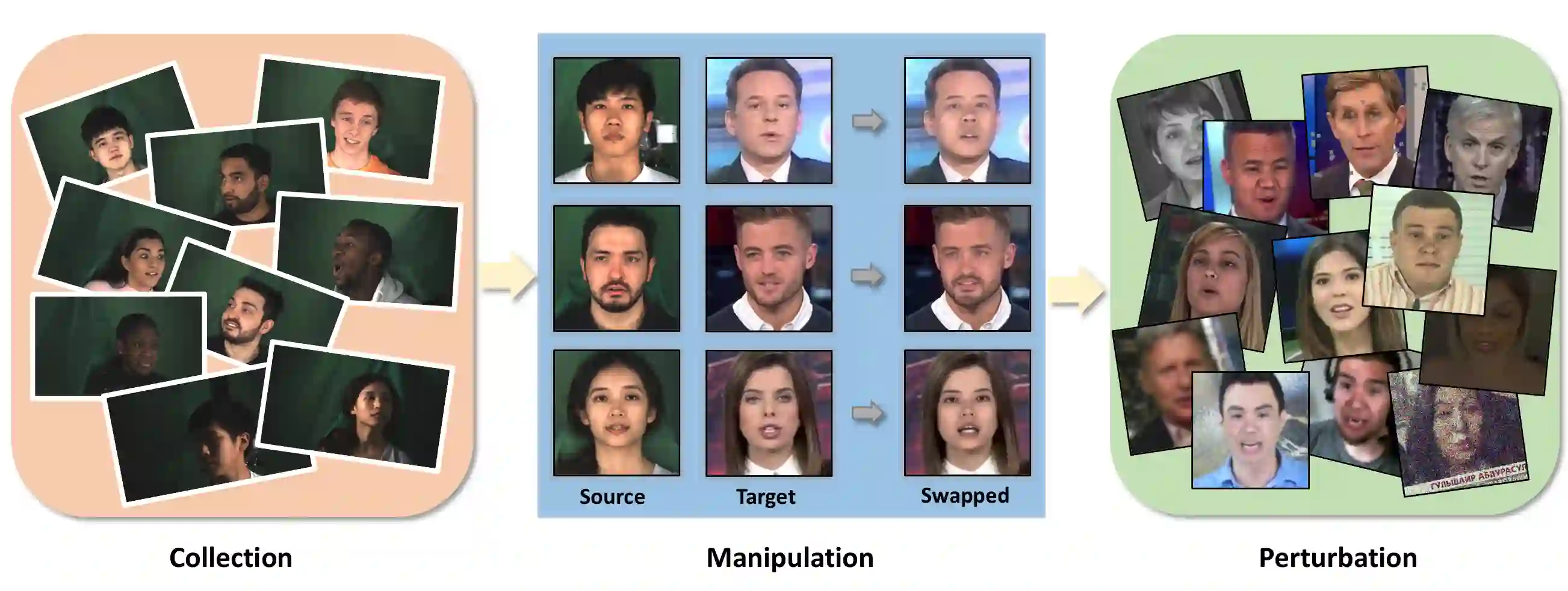翻译:我们介绍了我们为建立大规模假冒检测基准而正在进行的努力。这一基准的第一个版本,DeeperForensics-1.0,是迄今为止最大的面假检测数据集,共有60,000个视频,由总共1,760万个框架组成,比同类现有数据集大10倍。为了获得更大规模、更多样化的更具挑战性的基准,我们应用了广泛的真实世界扰动。DeeperForensics-1.0中的所有源视频都是仔细收集的,而假视频是由新提议的端对端面转换框架生成的。生成的视频的质量超越了现有数据集中的数据,并由用户研究验证。该基准有一个隐藏的测试集,其中包含了在人类评估中达到高欺骗性高分数的被操纵视频。我们进一步协助一项全面研究,对5个具有代表性的检测基线进行评估,并对不同的环境进行透彻分析。