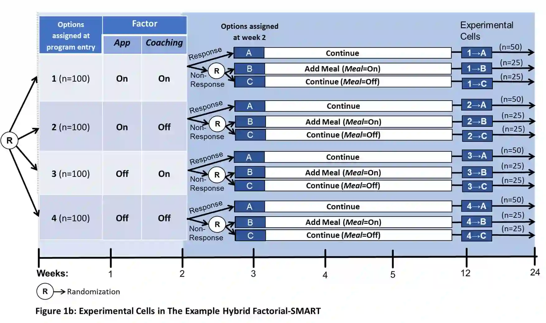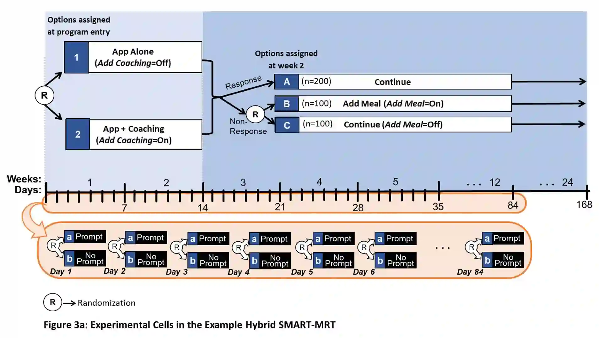 翻译:混合实验设计(HED)是一种新的实验方法,使研究人员能够解答关于心理干预的构建的科学问题,在心理干预中提供和调整部件,特别是利用移动和无线技术,这些设计包括以多种时间尺度提供和调整的多种组成部分(例如,根据临床进展每月改编的辅导课程,加上每天改编的移动装置的动力信息),混合实验设计(HED)是一种新的实验方法,使研究人员能够解答关于心理干预的构建的科学问题,在心理干预中提供和调整部件的时间尺度不同。这些设计涉及在适当的时间尺度(例如,每月随机化为辅导课程的不同强度,每日随机化为不同形式的激励信息),目前的手稿的目标是双重的。首先强调HED的灵活性,将这种实验方法概念化为一种特殊的形式,在不同的时间尺度上引入不同的因素,在不同的时间尺度上引入不同的因素。我们还讨论了HED的结构如何根据科学问题,在适当的时间尺度上对每个单元进行顺序排列。第二个目标是解释来自不同种类的HED课程的每月随机转换数据如何能用于解析关于我们所完成的多级科学干预的多重尺度,从而解算出关于HED的分级的分级的分级的分级的分级的分级分析,以便解了我们使用的分级的分级技术的分级的分级的分级的分级的分级的分级的分级的分级的分级的分级的分级的分级研究。
