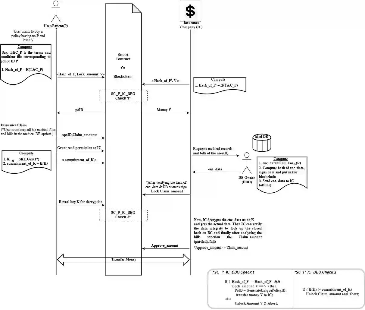 翻译:多年来,技术不断演变,使我们的生活更加容易。它影响到了保健部门,提高了人们的平均预期寿命。仍然存在着一些尚未解决的差距。保健系统缺乏透明度,导致病人和医院之间固有的信任问题。在今天,病人不知道他或她是否能从医院获得适当的收费治疗。病人可以要求任何保险公司偿还医疗费用。然而,今天,保险公司核查这类账单或医疗记录的有效性的可能性极小。病人可以提供假的详细资料,以便从保险公司获得财务利益。同样,病人(即保险索偿人)和保险公司之间也存在信任问题。与智能合同结合的封闭链是一种众所周知的破坏性技术,通过向系统提供透明度来建立信任。在这份文件中,我们建议由任何保险公司向任何保险公司索要保险单。所有实体的公平性:病人、医院或保险公司都有彼此信任的保证。病人的隐私和安全性医疗数据与保险公司公司之间的信任性问题。我们不保证他们自己的医疗数据网络的保密性,也不保证他们自己的保密性,我们不公开的保密性数据。我们建议一个数据库的保密性,我们不保留他们自己的数据库。
