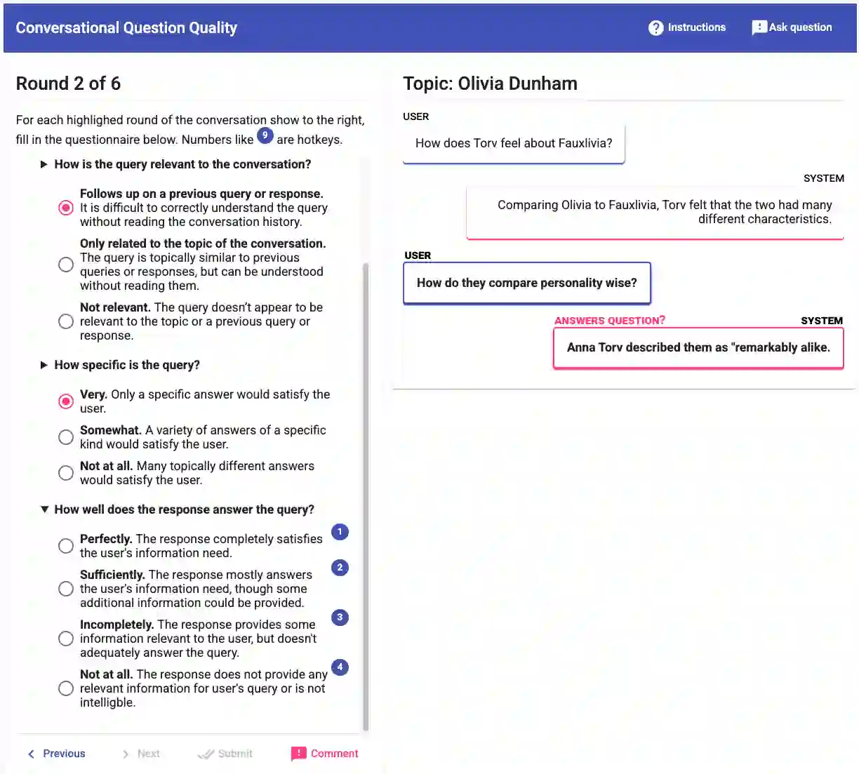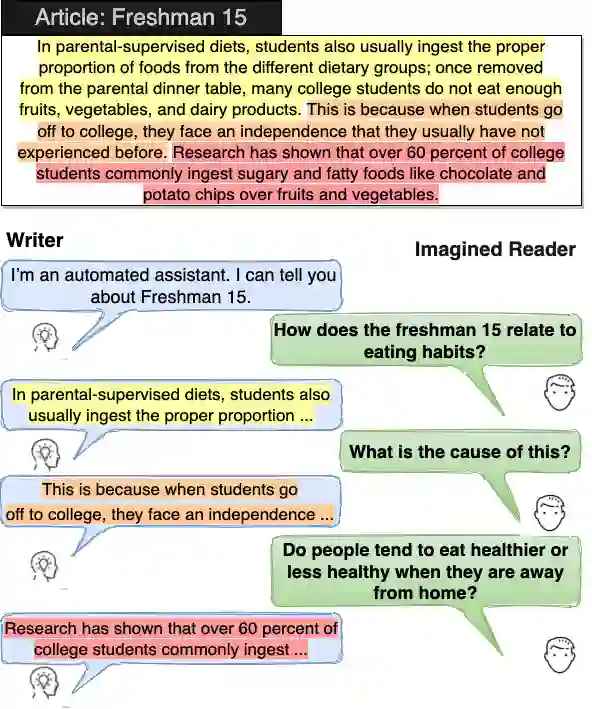 翻译:许多重要问题(例如“如何吃更健康? ” ) 需要对话才能建立背景和深入探讨。然而,对话问答(ConvQA)系统长期以来一直受到难以收集的培训数据(ConvQA)系统的干扰,因为收集的训练数据非常少。为了解决这一问题,我们提出了合成生成多样化和高质量对话数据的新技术:对话图画。我们的方法采纳了任何文件的文本,并将其转换成作者和想象中的读者之间的双人对话:我们把文章中的句子当作作者的发音处理,然后用对话来预测想象中的读者在作者的每个发音中要求或说的内容。我们通过对维基百科和网络的段落应用这一方法,产生了维基-迪亚洛格和WebDialog,两套数据集共1 900万个不同的信息查询对话,比现有的最大ConvQA数据集大1000x。此外,人类计算员们判断WikiDialog的答案是否足够和谈话性,好于现有的手动收集的40个相对数据库。我们用CARQ的进度前的数据检索系统。