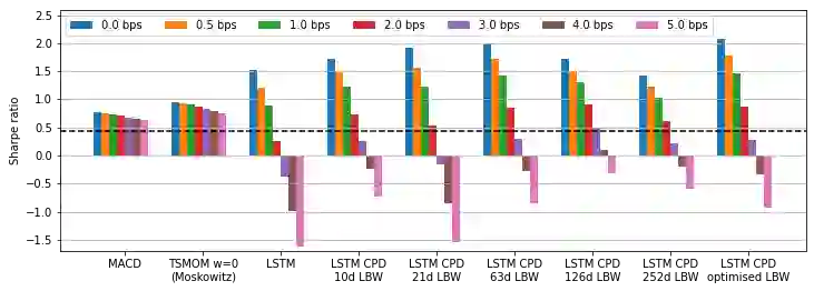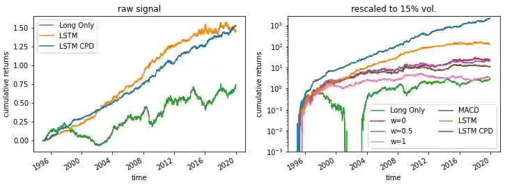 翻译:动力值战略是替代投资的重要组成部分,是商品交易顾问(CTAs)的核心。然而,这些战略被认为难以适应市场条件的快速变化,例如2020年市场崩溃期间。特别是,在势头转折点后,趋势从上升趋势(下降趋势)转向下降趋势(上升趋势),时间序列动力(TSMOM)战略容易做出错误的赌注。为了改进对制度变化的反应,我们引入了一种新颖的方法,即我们将一个在线改变点检测模块(CPD)纳入深动力网络(DMN) [1904.04912] 管道,该平台使用LSTM深度学习架构同时学习趋势估计和定位。此外,我们的模型能够优化它平衡速度缓慢的策略,它利用了持续趋势,但并没有对地方化的价格变动做出过快反应,2 一个快速的中位反向战略体系,它迅速翻转,然后再次将它转换回到50度网络(DMNM) [1904.4912] 管道,它使用LSTM的深度学习架构,同时学习趋势估计和定位。此外,我们的DA模模模模模值在1990年逐渐改变。