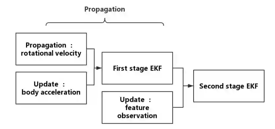 翻译:本文介绍了基于实时和稳健立体VIO(视觉惯性度值)的基于双级 EKF(扩展卡尔曼过滤器)的基于实时和稳健立体VIO(视觉惯性度值)的基于双级 EKF(扩展卡尔曼过滤器)的算法。 这个基于EKF的算法的第一阶段进行加速仪和陀螺仪的聚合,而第二个阶段则进行立体照相机和IMU的聚合。由于加速度计和陀螺仪以及立体照相机和IMU之间的充分互补特征,基于双级的基于EKF的算法可以实现高精确度的odoro估计。同时,由于这一算法中状态矢量值的低度,其计算效率与以前基于过滤法的方法相当。我们称我们的方法DS-VIO(基于双级 EKF的立体惯性惯性惯性惯性度值值值值值值度度值),并通过在ECVIS、ROVIO、VINS-MON和S-MSCKF上的最新方法加以比较,来评估我们的DSVIO算算法的算方法。结果显示,我们的算算能够误差或更好的表现。