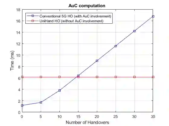 Introducing Small Cell Networks (SCN) has significantly improved wireless link quality, spectrum efficiency and network capacity, which has been viewed as one of the key technologies in the fifth-generation (5G) mobile network. However, this technology increases the frequency of handover (HO) procedures caused by the dense deployment of cells in the network with reduced cell coverage, bringing new security and privacy issues. The current 5G-AKA and HO protocols are vulnerable to security weaknesses, such as the lack of forward secrecy and identity confusion attacks. The high HO frequency of HOs might magnify these security and privacy concerns in the 5G mobile network. This work addresses these issues by proposing a secure privacy-preserving universal HO scheme ($\UniHand$) for SCNs in 5G mobile communication. $\UniHand$ can achieve mutual authentication, strong anonymity, perfect forward secrecy, key-escrow-free and key compromise impersonation (KCI) resilience. To the best of our knowledge, this is the \textit{first} scheme to achieve secure, privacy-preserving universal HO with \textit{KCI} resilience for roaming users in 5G environment. We demonstrate that our proposed scheme is resilient against all the essential security threats by performing a comprehensive formal security analysis and conducting relevant experiments to show the cost-effectiveness of the proposed scheme.