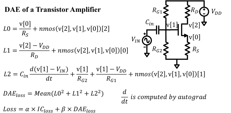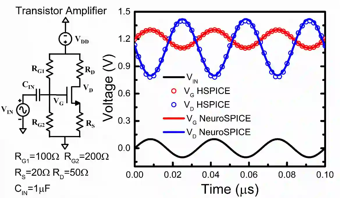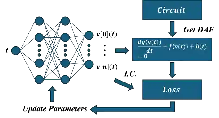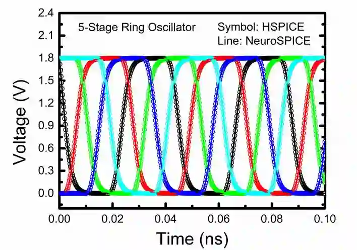 翻译:本文提出NeuroSPICE,一种基于物理信息的神经网络(PINN)框架,用于器件与电路仿真。与传统SPICE依赖时间离散化数值求解器不同,NeuroSPICE利用PINN通过反向传播最小化方程残差来求解电路微分代数方程(DAE)。该框架采用时域解析方程并精确计算时间导数,对器件与电路波形进行建模。尽管PINN在训练过程中的速度与精度未超越SPICE,但其具备独特优势,例如可为设计优化与反问题提供代理模型。NeuroSPICE的灵活性使其能够仿真新兴器件,包括铁电存储器等高度非线性系统。