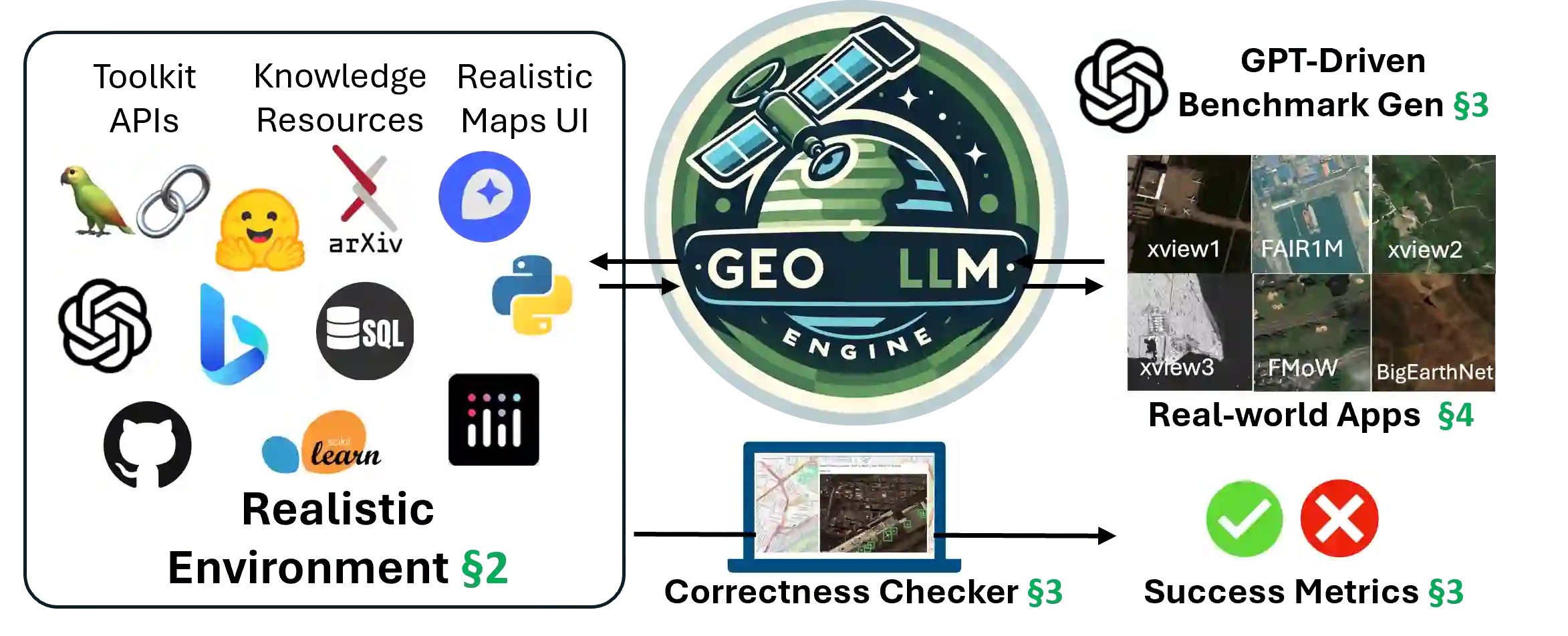 Geospatial Copilots unlock unprecedented potential for performing Earth Observation (EO) applications through natural language instructions. However, existing agents rely on overly simplified single tasks and template-based prompts, creating a disconnect with real-world scenarios. In this work, we present GeoLLM-Engine, an environment for tool-augmented agents with intricate tasks routinely executed by analysts on remote sensing platforms. We enrich our environment with geospatial API tools, dynamic maps/UIs, and external multimodal knowledge bases to properly gauge an agent's proficiency in interpreting realistic high-level natural language commands and its functional correctness in task completions. By alleviating overheads typically associated with human-in-the-loop benchmark curation, we harness our massively parallel engine across 100 GPT-4-Turbo nodes, scaling to over half a million diverse multi-tool tasks and across 1.1 million satellite images. By moving beyond traditional single-task image-caption paradigms, we investigate state-of-the-art agents and prompting techniques against long-horizon prompts.