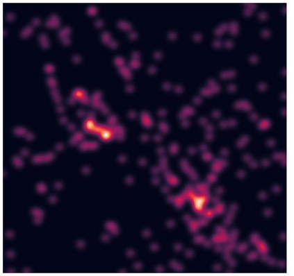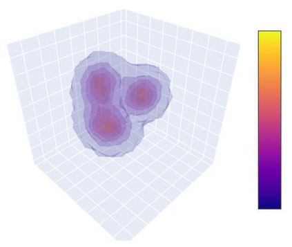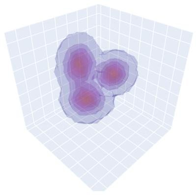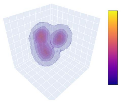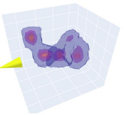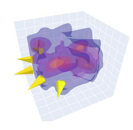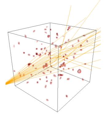 Refractive Index Tomography is an inverse problem in which we seek to reconstruct a scene's 3D refractive field from 2D projected image measurements. The refractive field is not visible itself, but instead affects how the path of a light ray is continuously curved as it travels through space. Refractive fields appear across a wide variety of scientific applications, from translucent cell samples in microscopy to fields of dark matter bending light from faraway galaxies. This problem poses a unique challenge because the refractive field directly affects the path that light takes, making its recovery a non-linear problem. In addition, in contrast with traditional tomography, we seek to recover the refractive field using a projected image from only a single viewpoint by leveraging knowledge of light sources scattered throughout the medium. In this work, we introduce a method that uses a coordinate-based neural network to model the underlying continuous refractive field in a scene. We then use explicit modeling of rays' 3D spatial curvature to optimize the parameters of this network, reconstructing refractive fields with an analysis-by-synthesis approach. The efficacy of our approach is demonstrated by recovering refractive fields in simulation, and analyzing how recovery is affected by the light source distribution. We then test our method on a simulated dark matter mapping problem, where we recover the refractive field underlying a realistic simulated dark matter distribution.