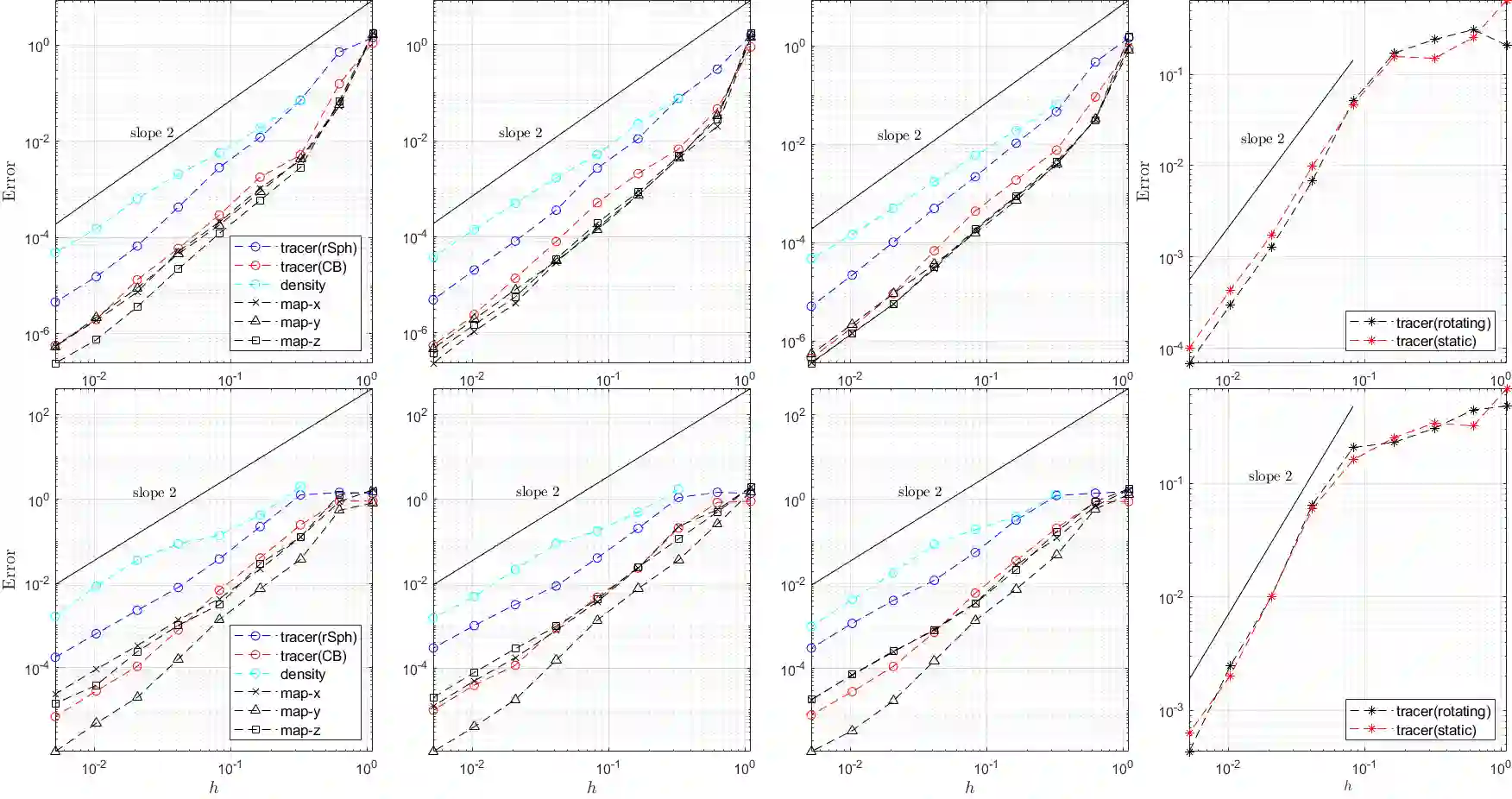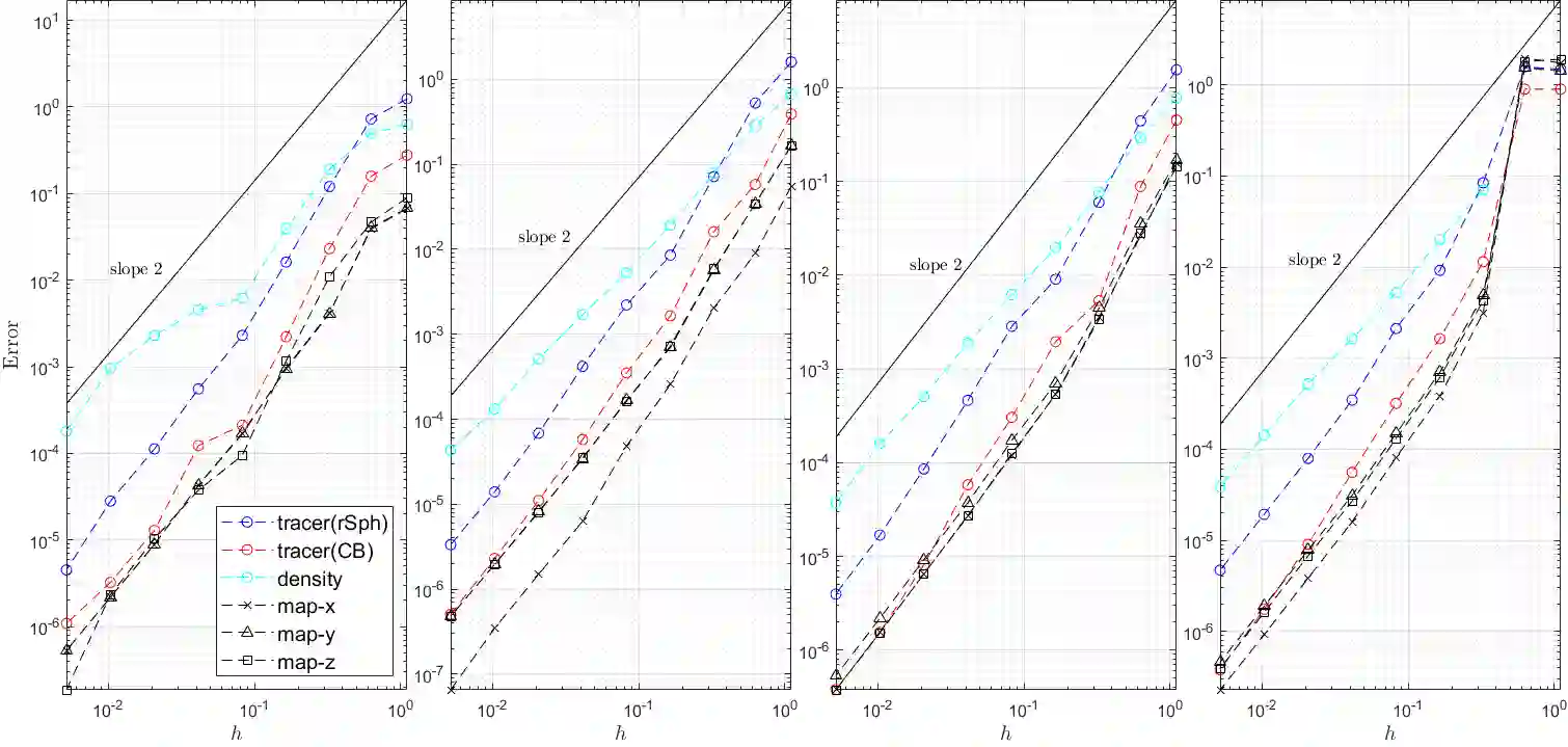 翻译:介绍了一种半Lagrangian 特征绘图方法,用于解决球体上痕量传输方程式的解决方案。该方法通过接近某一速度场产生的二异形反向,来解决方程式的解决方案。然后,任何痕量和质量密度的演化可以通过本图的拉回来计算。我们展示了多值地图使用以投影为基础的方法以及球状样插图进行新的空间分解。该数字方案为示踪器传输方程式的地图和全球二阶级精确度提供了$C$1的连续性,提供了错误估计,并得到了涉及固体体旋转、移动浮质、变形和可压缩流的趋同测试的支持。此外,我们用数字混合测试和在复杂的流动环境中运输折形装置来计算解决方案操作器的一些独特特征。