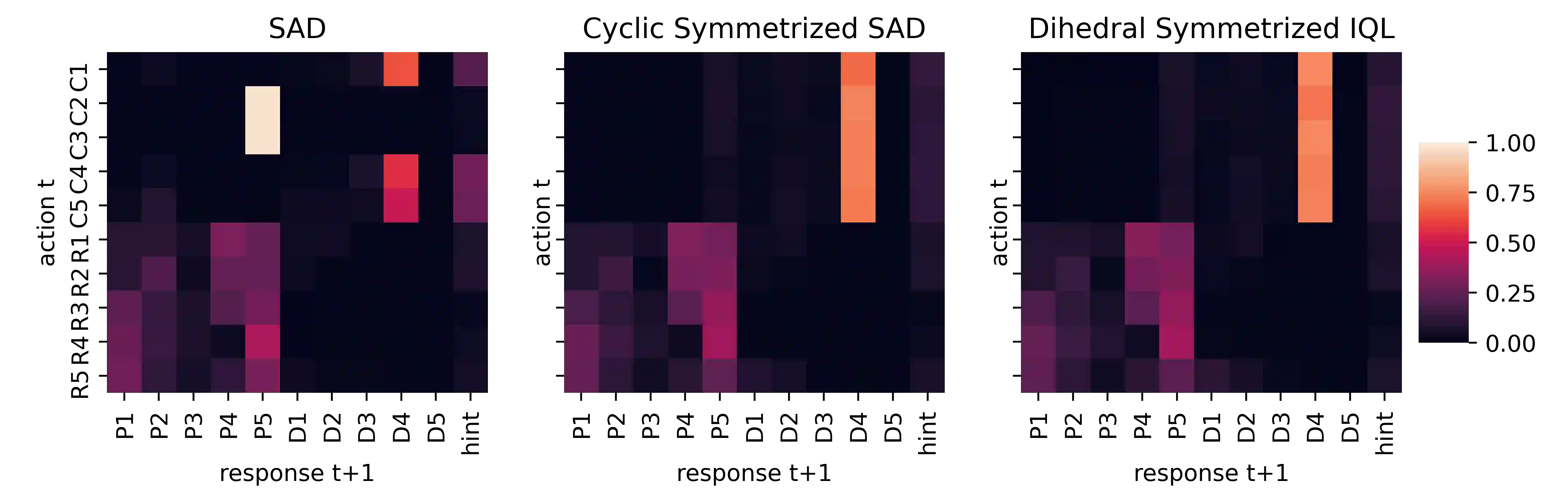 翻译:在Dec-POMDPs中,成功的协调要求代理商为其合伙人采取强有力的策略和可解释的游戏风格。通常的失败模式是对称性打破,当代理商任意地将许多同等但互不相容的政策组合在一起时。这些通常的例子包括部分可观察性,例如挥舞你的右手对左手以传递隐藏信息。在本文中,我们展示了一种新的等同网络架构,供Dec-POMDPs使用,防止代理商学习打破对称的政策,比以前的方法更有效。我们的方法还作为通用的、预先训练的政策的“协调改进操作员”,因此可以与任何自玩算法一起在测试时应用。我们为我们的工作提供理论保证,并测试了Hanabi的AI基准任务,我们在那里展示了我们的方法比零光协调中其他的对称基线要好,并且能够提高各种预先训练的政策的协调能力。我们的方法还表明,我们的方法可以用来改进汉的零光基准的协调状态。