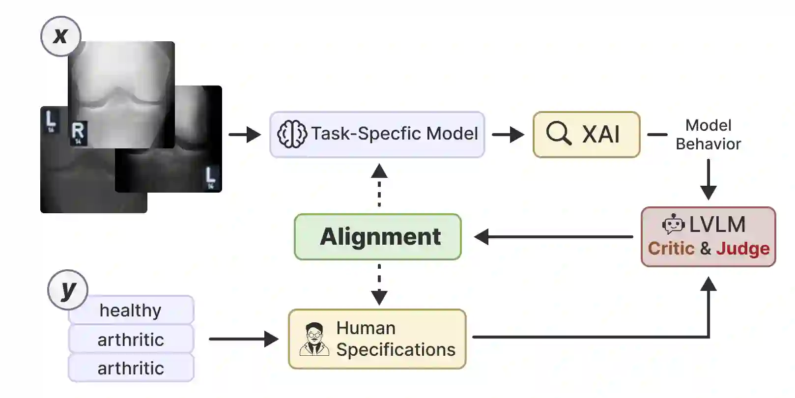 翻译:在高风险领域中,小型任务专用视觉模型因其低计算需求以及存在多种可解释其结果的方 法而至关重要。然而,这些解释常揭示模型未能与人类领域知识良好对齐,反而依赖于虚假 相关性。这可能导致模型在真实世界部署时表现出脆弱性。为解决此问题,我们提出一种新 颖且高效的方法,通过利用大型视觉语言模型(LVLM)的泛化能力,将小型任务专用视觉 模型与人类领域知识对齐。我们的LVLM辅助视觉对齐(LVLM-VA)方法提供了一个双向接 口,可将模型行为转化为自然语言,并将人类类别级规范映射到图像级评判,从而实现领域 专家与模型之间的有效交互。我们的方法在合成数据集和真实世界数据集上的验证表明,其 在使模型行为与人类规范对齐方面取得了显著改进。我们证明,该方法有效降低了模型对虚 假特征和群体特定偏见的依赖,且无需细粒度反馈。