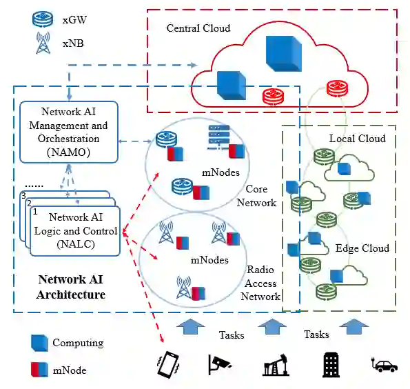 翻译:为加强传输和网络性能,利用更多的无线电资源,提高频谱和能源效率,制定了移动通信标准,以提高传输和网络性能; 如何有效满足用户的不同要求,保证每个人的经验质量,仍然是一个尚未解决的问题; 第一代(6G)移动系统将利用网络资源差异化和广博情报,支持在任何地方和任何时间支持以人为中心的定制服务; 在本条中,我们首先在用户方面树立服务需求区的概念,以描述和直观综合服务要求和个别用户具体任务偏好; 在系统方面,我们进一步引入用户满意率概念,以评价系统满足不同SRZ的各种任务的总体服务能力; 然后,我们提出一个人工智能(AI)网络结构,配备综合网络资源,以及以有保障的QoEs支持定制服务的普遍AI能力; 最后,广泛的模拟表明,拟议的网络AI结构在不同的任务调度算法、随机服务要求和动态网络条件方面,可以始终提供比云层AI和边缘AI结构更高的性能。