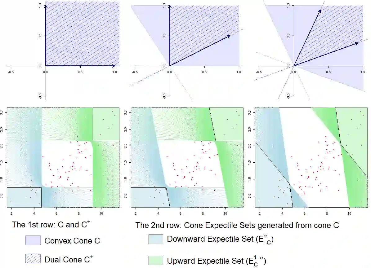 Recently defined expectile regions capture the idea of centrality with respect to a multivariate distribution, but fail to describe the tail behavior while it is not at all clear what should be understood by a tail of a multivariate distribution. Therefore, cone expectile sets are introduced which take into account a vector preorder for the multi-dimensional data points. This provides a way of describing and clustering a multivariate distribution/data cloud with respect to an order relation. Fundamental properties of cone expectiles including dual representations of both expectile regions and cone expectile sets are established. It is shown that set-valued sublinear risk measures can be constructed from cone expectile sets in the same way as in the univariate case. Inverse functions of cone expectiles are defined which should be considered as rank functions rather than depth functions. Finally, expectile orders for random vectors are introduced and characterized via expectile rank functions.