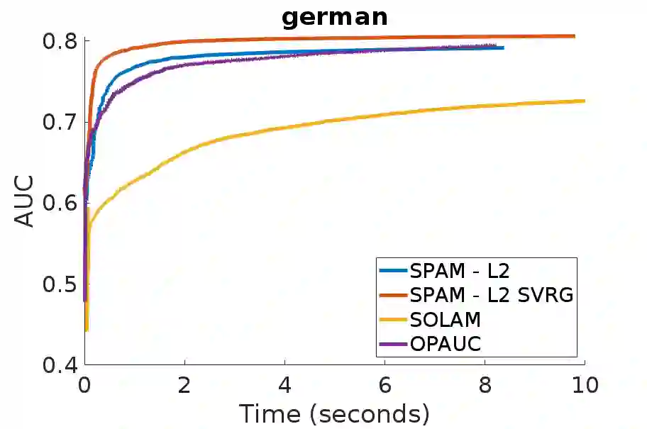 翻译:然而,当使用非可分解的双向性能衡量尺度时,这些随机算法无法直接使用,例如ROC曲线(AUC)下的区域(AUC),这是在分类不平衡时常见的性能衡量尺度。为了优化AUC作为性能衡量尺度,提出了几种计算法,最近提出的一种算法是随机准度梯度算法(SPAM),但是,这些随机分析法的下方是,它们存在高差异,导致趋同速度放慢。为解决这一问题,提出了几种差异减少的方法,但保证汇合速度快于香草类相向梯度下降。同样,在使用不可分解的性能衡量尺度时,这些差异减少的方法不直接适用。在本文中,我们为AUC最大化(\ textsc{VRSPAM})开发了差异性减少的蒸气准性准值算法,并进行理论分析,以表明我们的算法比SPAM(AMAM)更快,而SPAM是AUC最大化问题以前的状态。