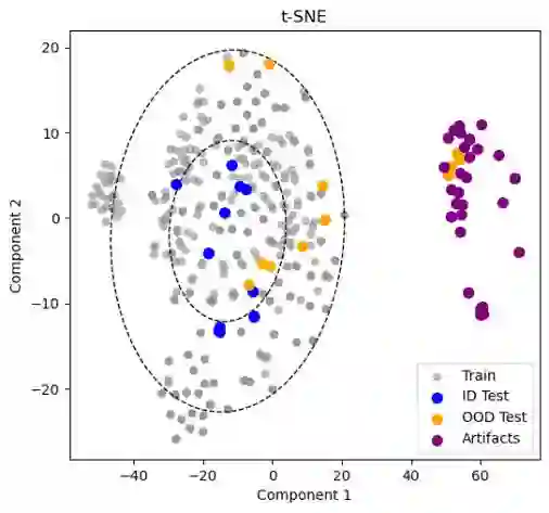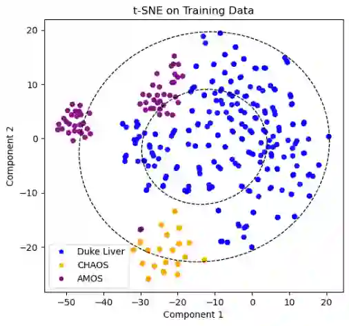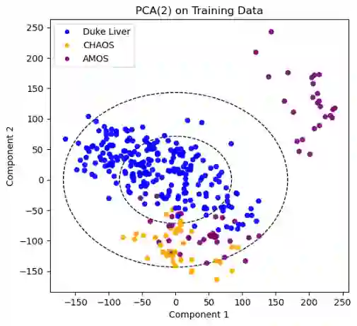 Clinically deployed segmentation models are known to fail on data outside of their training distribution. As these models perform well on most cases, it is imperative to detect out-of-distribution (OOD) images at inference to protect against automation bias. This work applies the Mahalanobis distance post hoc to the bottleneck features of a Swin UNETR model that segments the liver on T1-weighted magnetic resonance imaging. By reducing the dimensions of the bottleneck features with principal component analysis, OOD images were detected with high performance and minimal computational load.