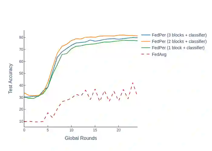翻译:新兴的联邦学习模式力求在不集中汇集原始数据的情况下,在网络边缘对机器学习模式进行协作培训,从而改善数据隐私。这与传统的机器学习大相径庭,需要设计强有力的算法以适应各种异质性来源。具体地说,跨用户设备的统计数据差异性可以严重降低传统机器学习应用的标准联邦平均绩效,如通过深层次学习实现个性化。本文的辅助目标FedPer,这是对深厚饲料神经网络进行联合培训的基础+个性化层次方法,可以消除统计异质的不良效应。我们展示了CIFAR数据集和来自Flickr的个性化图像美学数据集的FedPerfor非同式数据分割法的有效性。