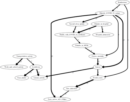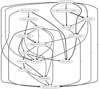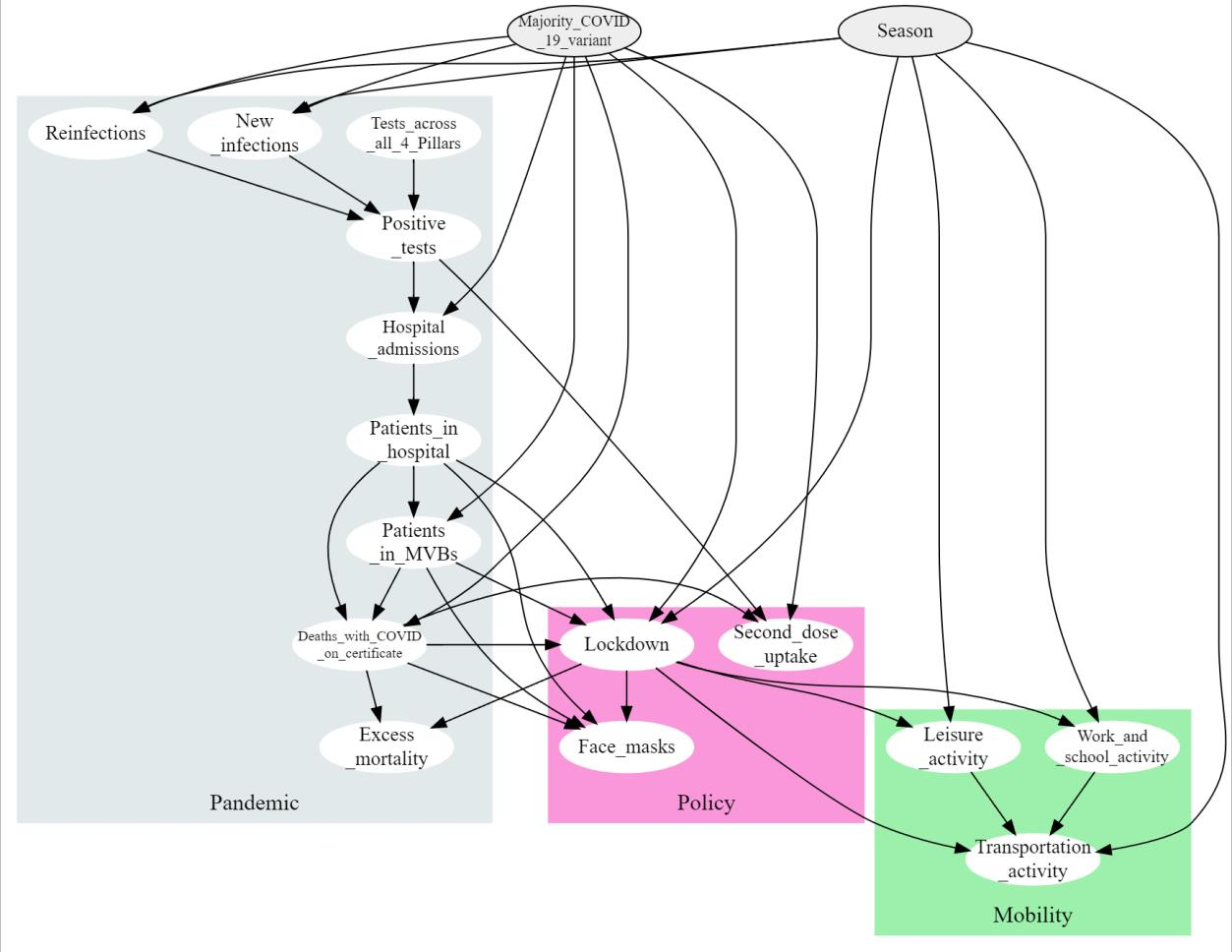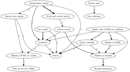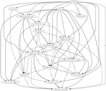 Causal machine learning (ML) algorithms recover graphical structures that tell us something about cause-and-effect relationships. The causal representation praovided by these algorithms enables transparency and explainability, which is necessary for decision making in critical real-world problems. Yet, causal ML has had limited impact in practice compared to associational ML. This paper investigates the challenges of causal ML with application to COVID-19 UK pandemic data. We collate data from various public sources and investigate what the various structure learning algorithms learn from these data. We explore the impact of different data formats on algorithms spanning different classes of learning, and assess the results produced by each algorithm, and groups of algorithms, in terms of graphical structure, model dimensionality, sensitivity analysis, confounding variables, predictive and interventional inference. We use these results to highlight open problems in causal structure learning and directions for future research. To facilitate future work, we make all graphs, models, data sets, and source code publicly available online.