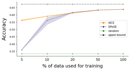翻译:在本文中,我们引入了概念嵌入(VICE)的变量推断法,这是一种近似贝叶斯学用的方法,用于学习从人类行为中嵌入的物体概念,这种方法是一种奇数一出三重任务。我们使用变式推断法获得一种稀有的非负式解决办法,对每个嵌入值进行不确定性估计。我们利用这些估计法自动选择解释数据的维度,同时产生可复制的嵌入。我们引入了一种用于VICE的PAC学习定界,可用于估计一般化性能或确定不同实验设计的足够样本大小。VICE对立或超出其前身SPOSE在三重任务中预测人类行为的前身SPOSE。 VICE的物体表示方式在不同的随机初始化中具有很大的再复制性和一致性。