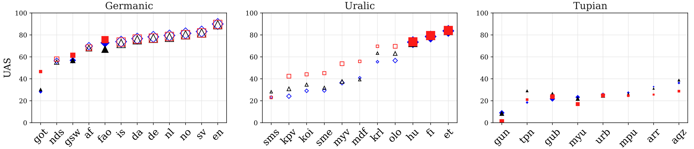 翻译:受过数十种语言培训的大型预先培训的多语种模式,由于在各种语言任务上具有跨语言学习能力,已经取得了令人乐观的成果。进一步将这些模式适应特定语言,特别是培训前所未见的语言,是扩大语言技术覆盖面的一个重要目标。在这项研究中,我们展示了我们如何利用语言生理遗传信息,以结构化、语言知情的方式利用密切关联的语言,改进跨语言转让。我们开展了基于适应者的不同语言家庭语言(德语、乌拉利奇语、图皮安语、乌托阿兹泰肯语)的培训,并评估了合成和语义任务,在常用的强基线上取得了超过20%的相对绩效改进,特别是在培训前未见的语言上。