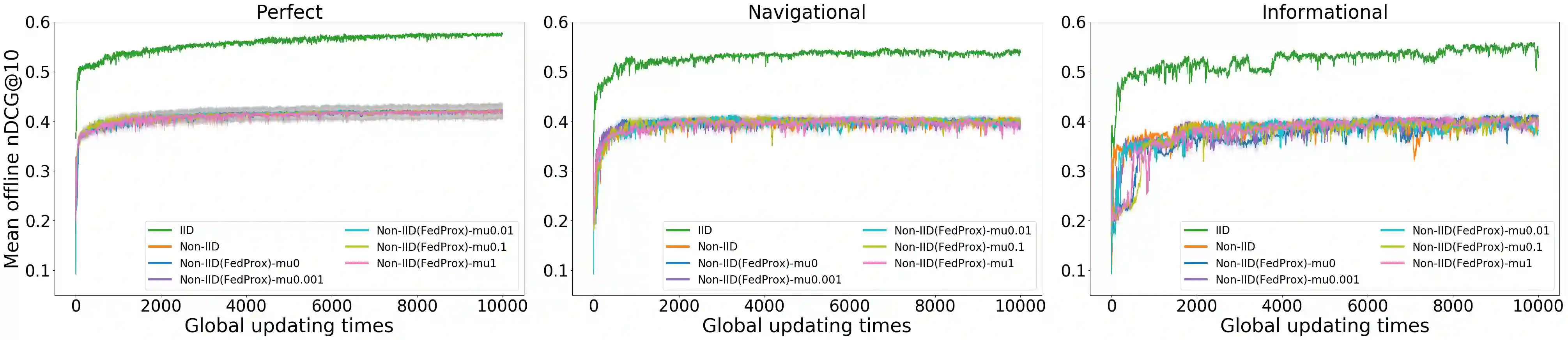 翻译:在本观点文件中,我们研究了非独立和同样分发的(非IID)在线数据对联合在线学习的影响(FOLTR)和在信息检索新领域(信息检索新领域)未来工作的图表方向。在FOLTR进程中,客户参与一个联合会,共同从来自每个客户的隐性点击信号中创建有效的排名器,无需分享数据(文件、查询、点击),影响联合学习系统业绩的一个众所周知的因素,给这些方法带来严重挑战,这就是数据在客户之间分配方式上可能存在某种偏差。虽然FOLTRTR系统在自己的权利上是一种联合学习系统,但在FOLTRTR研究领域,非II系统的存在和影响还没有研究。为了这个目的,我们首先列出可能显示客户之间数据偏差从而引起非IID问题的可能的数据分发环境。 然后,我们研究每个因素对目前水平的TRTRTR工具的绩效的影响,在客户之间分配方式上可能存在某种偏差的偏差。 FOLTRTRTRTRTRII方法,而FOL研究方法在FLFFD中也使得我们未来的研究方法能够进行这样的研究。