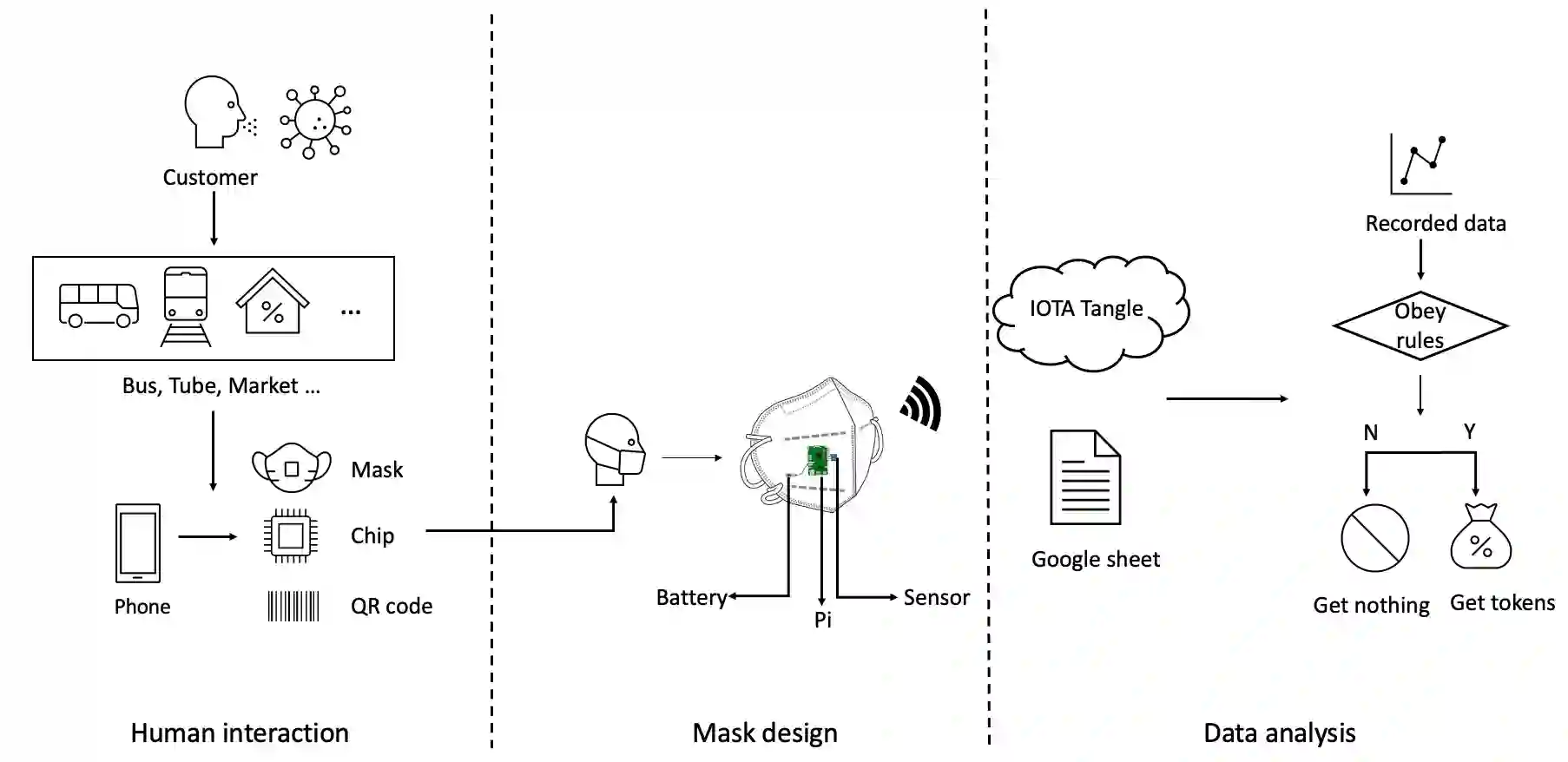 翻译:由于Covid-19仍然是一个令人关切的问题,特别是由于其变异,正确而有效地戴面罩仍然是限制该疾病传播的一个优先事项。在本文中,我们展示了一个使用来自物、控制理论和分布器技术互联网概念的可磨损智能模版。其目的是通过使用奖励措施鼓励人们遵守社会分化规范。智能面罩旨在监测二氧化碳和挥发性有机化合物的浓度。检测到的数据附在以DAG为基础的DLT上,名为IOTA 三角洲。IOTA三角洲确保数据是安全的、不可移动的,并且作为激励机制的通信支柱。正在开发基于室内定位的硬件插座模拟,以验证设计原型的有效性。