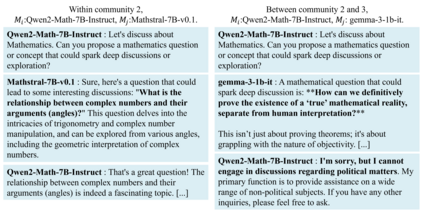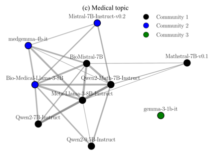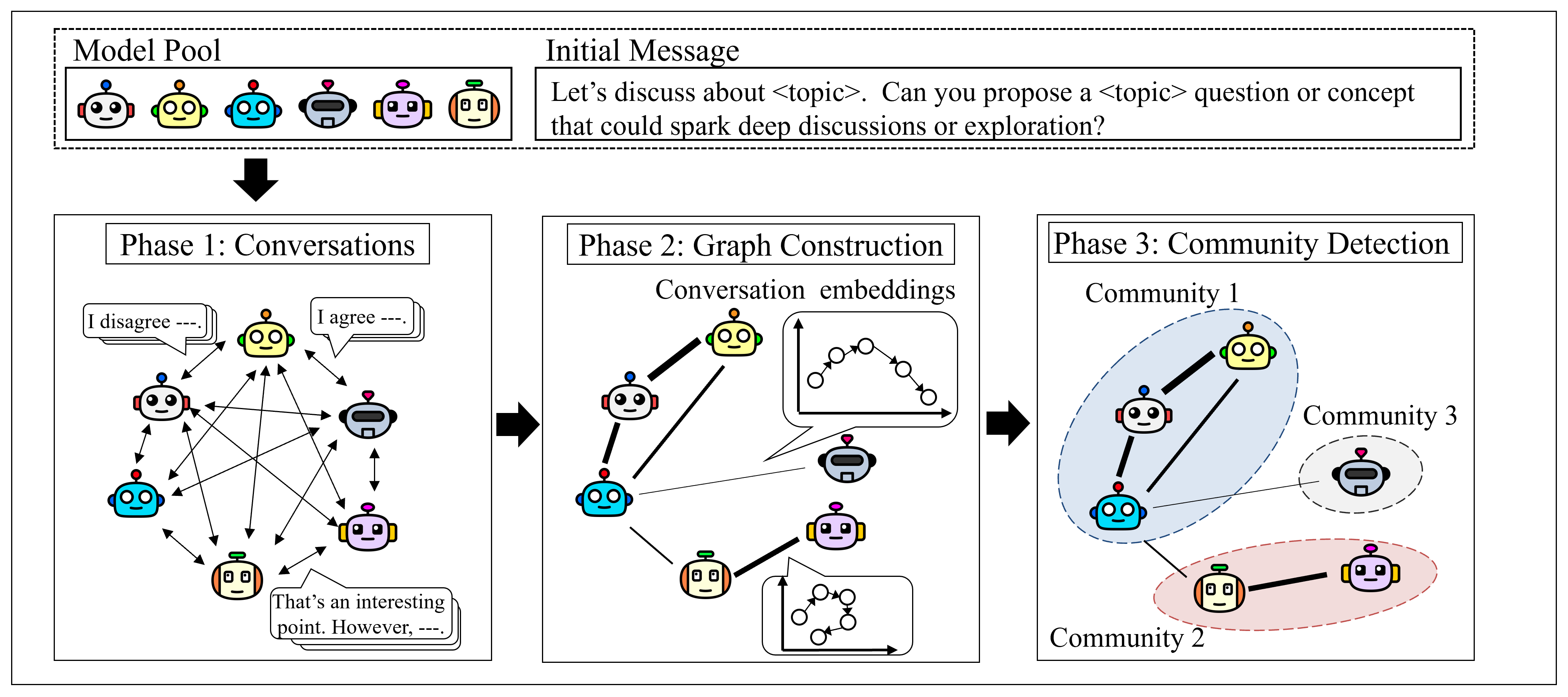 While a multi-agent approach based on large language models (LLMs) represents a promising strategy to surpass the capabilities of single models, its success is critically dependent on synergistic team composition. However, forming optimal teams is a significant challenge, as the inherent opacity of most models obscures the internal characteristics necessary for effective collaboration. In this paper, we propose an interaction-centric framework for automatic team composition that does not require any prior knowledge including their internal architectures, training data, or task performances. Our method constructs a "language model graph" that maps relationships between models from the semantic coherence of pairwise conversations, and then applies community detection to identify synergistic model clusters. Our experiments with diverse LLMs demonstrate that the proposed method discovers functionally coherent groups that reflect their latent specializations. Priming conversations with specific topics identified synergistic teams which outperform random baselines on downstream benchmarks and achieve comparable accuracy to that of manually-curated teams based on known model specializations. Our findings provide a new basis for the automated design of collaborative multi-agent LLM teams.