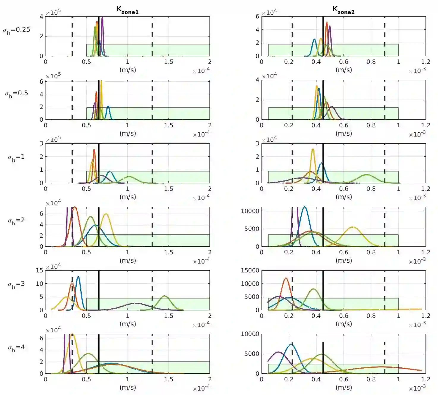 翻译:地下水流模型通常用于计算地下水头、估计地下水流路径和旅行时间,并对含水层内的溶液运输过程提供洞察力。然而,驱动地下水流模型的输入参数值往往由于地表下层异质和地质复杂性,加上缺乏测量/不可靠的测量结果,因此,不确定性影响模型产出的准确性和可靠性。因此,参数的不确定性必须量化,然后才采用模型作为工程工具。在本研究中,我们将不确定参数作为随机变量进行模型模型模型模型模型的模型,并使用巴耶斯反向法方法,为这些参数获得一个后表层、数据知情、概率密度功能(pdf),特别是,我们所考虑的参数的概率功能往往非常不确定,因为地下水泉的测量和“专家知识”范围不强。为了控制模型产出的精确性和可靠性,我们假定参数的后部的参数具有可计量性。为了证实这一假设,我们用Bayesian的参数分析:我们用回移程序对数组合成数据进行污染,开始测测测测测测,我们用河底的噪音值,然后从Rivo 开始,我们用一个水平,我们从Ribilal 恢复一个数据,然后在意大利恢复一个水平,我们从Ribal Ribal 进行一个水平,我们可以确定一个水平,然后恢复一个水平。