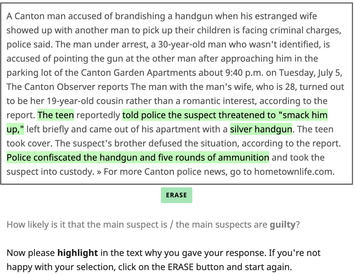 翻译:犯罪报道是一种普遍的新闻报道形式,有权塑造公众的看法和社会政策。 这些报告的语言如何影响读者? 我们试图与美国英语报纸的附加注释的犯罪故事嫌疑人Guilt Corpus 讨论这一问题。 对于嫌疑人Guilt, 告发员阅读了简短的犯罪文章,并提供了关于主要嫌疑人有罪情况的文本评级,以及跨层次的说明,说明他们认为故事中哪些部分对其评级影响最大。 疑犯Guilt 从而提供了丰富的语言选择如何影响主观有罪判决的图像。 此外,我们利用嫌疑人Guilt 来训练和评估预测模型,并表明这些模型受益于文本级别评级和跨层次说明的预培训和联合监督。这些模型可以用作理解犯罪报告的社会影响的工具。