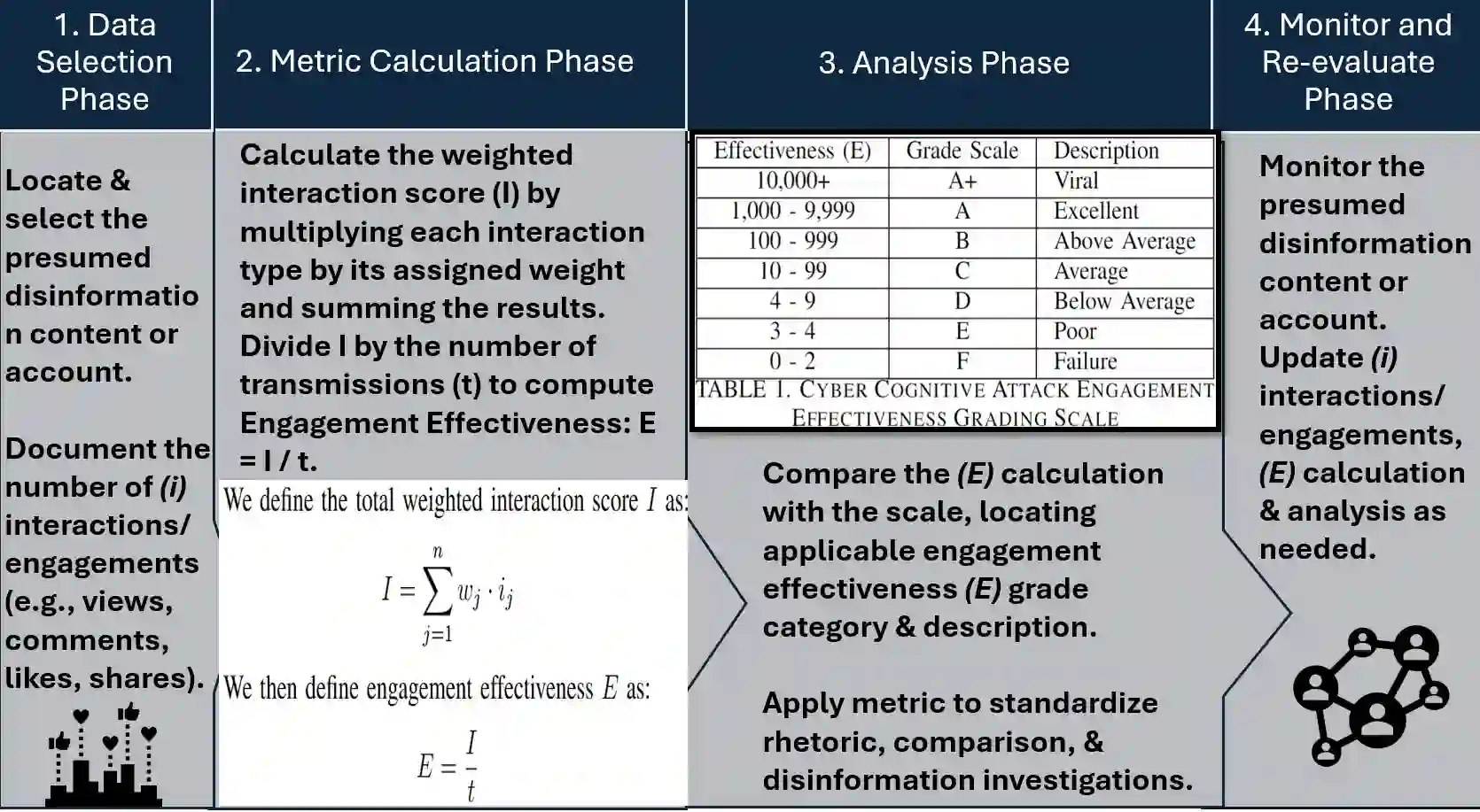 As disinformation-driven cognitive attacks become increasingly sophisticated, the ability to quantify their impact is essential for advancing cybersecurity defense strategies. This paper presents a novel framework for measuring the engagement effectiveness of cognitive attacks by introducing a weighted interaction metric that accounts for both the type and volume of user engagement relative to the number of attacker-generated transmissions. Applying this model to real-world disinformation campaigns across social media platforms, we demonstrate how the metric captures not just reach but the behavioral depth of user engagement. Our findings provide new insights into the behavioral dynamics of cognitive warfare and offer actionable tools for researchers and practitioners seeking to assess and counter the spread of malicious influence online.