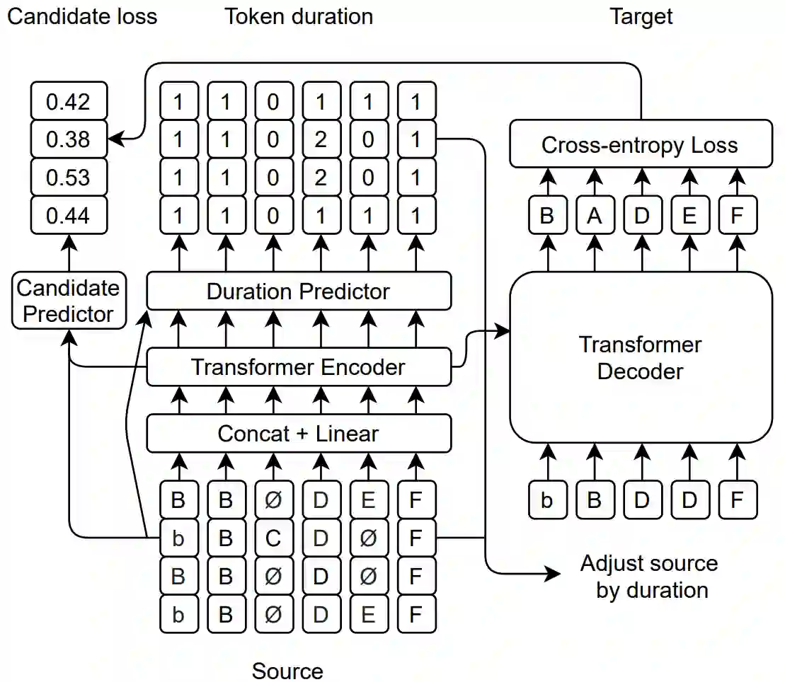 翻译:在自动语音识别(ASR)后处理生成的句子时广泛使用错误校正(ASR),这可以进一步降低字错误率(WER)。虽然多个候选人是通过ASR系统通过光搜索生成的,但当前错误校正方法只能一次纠正一个句子,无法从多个候选人中利用表决效应更好地检测和纠正错误符号。在这项工作中,我们建议快速更正2,一个将多个 ASR 候选人作为改进校正准确度的输入的错误校正模式。快速更正2,采用非自动递校制生成快速推断,包括一个编码器,处理多源句子和解码器,从调整源句的句子中平行生成目标句子。但目前的错误校正方法只能根据每个源符号的预测时间长度来纠正一个句子。首先,我们建议采用新的校正校正校正算算算算算法,使多个句子的代号一致程度最大化。第二, decoder 只能用一个校正的源代码来测试一个校正的版本,而我们只能用一个校正的版本来测试一个校正版本版本的版本的版本。