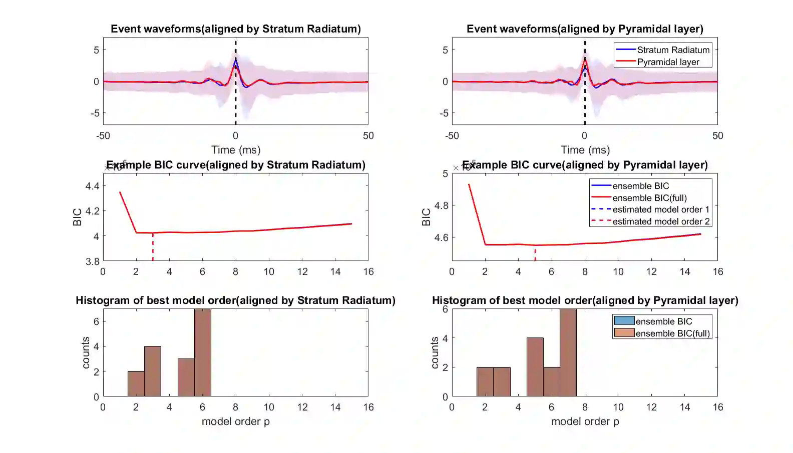 Transient recurring phenomena are ubiquitous in many scientific fields like neuroscience and meteorology. Time inhomogenous Vector Autoregressive Models (VAR) may be used to characterize peri-event system dynamics associated with such phenomena, and can be learned by exploiting multi-dimensional data gathering samples of the evolution of the system in multiple time windows comprising, each associated with one occurrence of the transient phenomenon, that we will call "trial". However, optimal VAR model order selection methods, commonly relying on the Akaike or Bayesian Information Criteria (AIC/BIC), are typically not designed for multi-trial data. Here we derive the BIC methods for multi-trial ensemble data which are gathered after the detection of the events. We show using simulated bivariate AR models that the multi-trial BIC is able to recover the real model order. We also demonstrate with simulated transient events and real data that the multi-trial BIC is able to estimate a sufficiently small model order for dynamic system modeling.