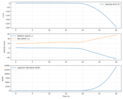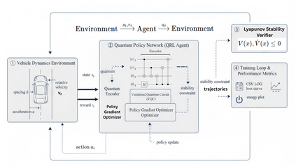 This paper presents a novel Lyapunov-Based Quantum Reinforcement Learning (LQRL) framework that integrates quantum policy optimization with Lyapunov stability analysis for continuous-time vehicle control. The proposed approach combines the representational power of variational quantum circuits (VQCs) with a stability-aware policy gradient mechanism to ensure asymptotic convergence and safe decision-making under dynamic environments. The vehicle longitudinal control problem was formulated as a continuous-state reinforcement learning task, where the quantum policy network generates control actions subject to Lyapunov stability constraints. Simulation experiments were conducted in a closed-loop adaptive cruise control scenario using a quantum-inspired policy trained under stability feedback. The results demonstrate that the LQRL framework successfully embeds Lyapunov stability verification into quantum policy learning, enabling interpretable and stability-aware control performance. Although transient overshoot and Lyapunov divergence were observed under aggressive acceleration, the system maintained bounded state evolution, validating the feasibility of integrating safety guarantees within quantum reinforcement learning architectures. The proposed framework provides a foundational step toward provably safe quantum control in autonomous systems and hybrid quantum-classical optimization domains.