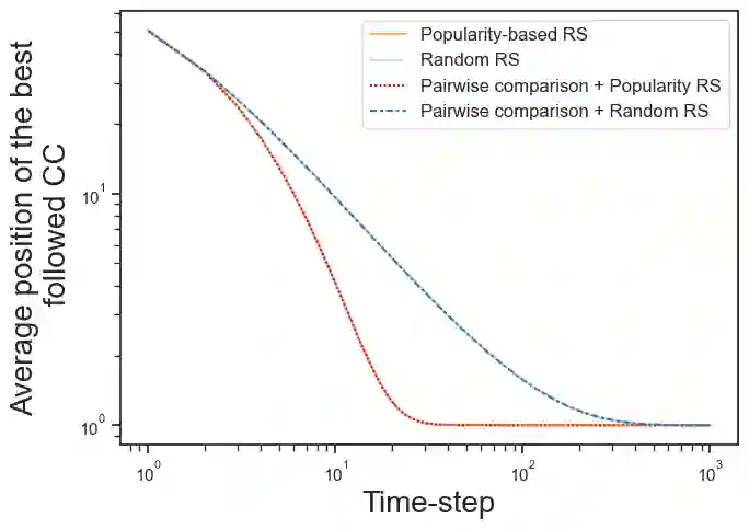 翻译:社交媒体平台为数百万专业内容创作者提供了可持续的收入来源。他们的收入很大程度上取决于其作品观看量和粉丝数量,而这些又依赖于平台的推荐系统。因此,如同常规职业一样,确保推荐系统以公平方式分配收益至关重要。例如,先前研究分析了最高质量内容的创作者是否能够获得最多的粉丝和收入。结果表明这种情况不太可能出现,但并未提出针对性解决方案。在本研究中,我们首先通过理论分析和合成数据集的模拟来深入理解系统机制,并寻找能够改善创作者公平性的干预措施。我们发现,采用有序配对比较法能够克服新项目集的冷启动问题,并显著提高所有内容创作者获得公平结果的可能性。重要的是,该方法同时保持了用户满意度。我们还在MovieLens数据集上测试了该干预措施,并研究了其在具有历史交互数据且当前对创作者存在不公平现象的平台上有效性。实验表明,当在平台早期阶段部署该干预措施时,公平性得到改善,但随着既有偏见的增强,其效果会逐渐减弱。总体而言,我们发现有序配对比较方法可能为新兴和现有平台提供一种可行的替代实施方案。