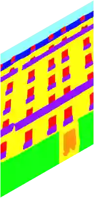 Building facade parsing, which predicts pixel-level labels for building facades, has applications in computer vision perception for autonomous vehicle (AV) driving. However, instead of a frontal view, an on-board camera of an AV captures a deformed view of the facade of the buildings on both sides of the road the AV is travelling on, due to the camera perspective. We propose Facade R-CNN, which includes a transconv module, generalized bounding box detection, and convex regularization, to perform parsing of deformed facade views. Experiments demonstrate that Facade R-CNN achieves better performance than the current state-of-the-art facade parsing models, which are primarily developed for frontal views. We also publish a new building facade parsing dataset derived from the Oxford RobotCar dataset, which we call the Oxford RobotCar Facade dataset. This dataset contains 500 street-view images from the Oxford RobotCar dataset augmented with accurate annotations of building facade objects. The published dataset is available at https://github.com/sijieaaa/Oxford-RobotCar-Facade