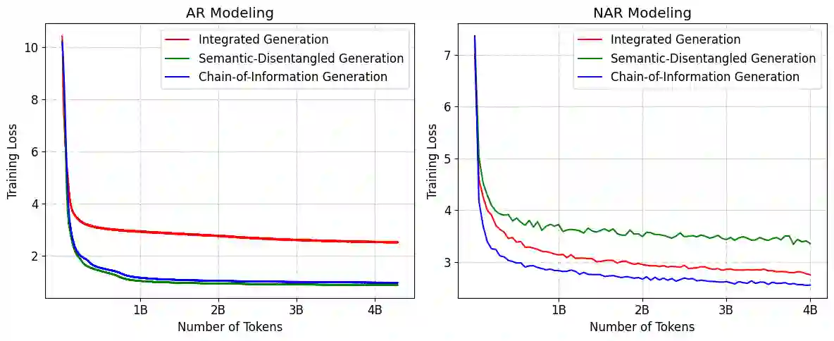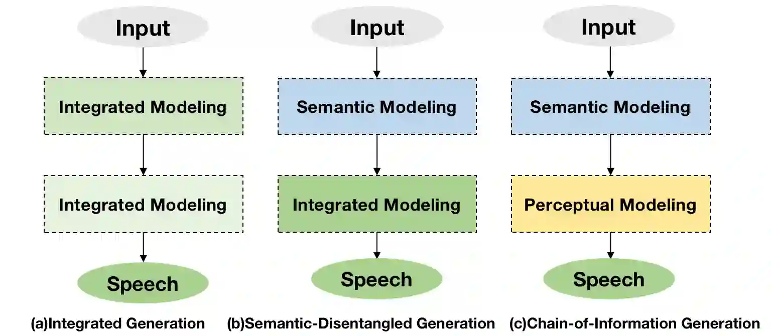 Benefiting from effective speech modeling, current Speech Large Language Models (SLLMs) have demonstrated exceptional capabilities in in-context speech generation and efficient generalization to unseen speakers. However, the prevailing information modeling process is encumbered by certain redundancies, leading to inefficiencies in speech generation. We propose Chain-of-Information Generation (CoIG), a method for decoupling semantic and perceptual information in large-scale speech generation. Building on this, we develop SpeechGPT-Gen, an 8-billion-parameter SLLM efficient in semantic and perceptual information modeling. It comprises an autoregressive model based on LLM for semantic information modeling and a non-autoregressive model employing flow matching for perceptual information modeling. Additionally, we introduce the novel approach of infusing semantic information into the prior distribution to enhance the efficiency of flow matching. Extensive experimental results demonstrate that SpeechGPT-Gen markedly excels in zero-shot text-to-speech, zero-shot voice conversion, and speech-to-speech dialogue, underscoring CoIG's remarkable proficiency in capturing and modeling speech's semantic and perceptual dimensions. Code and models are available at https://github.com/0nutation/SpeechGPT.